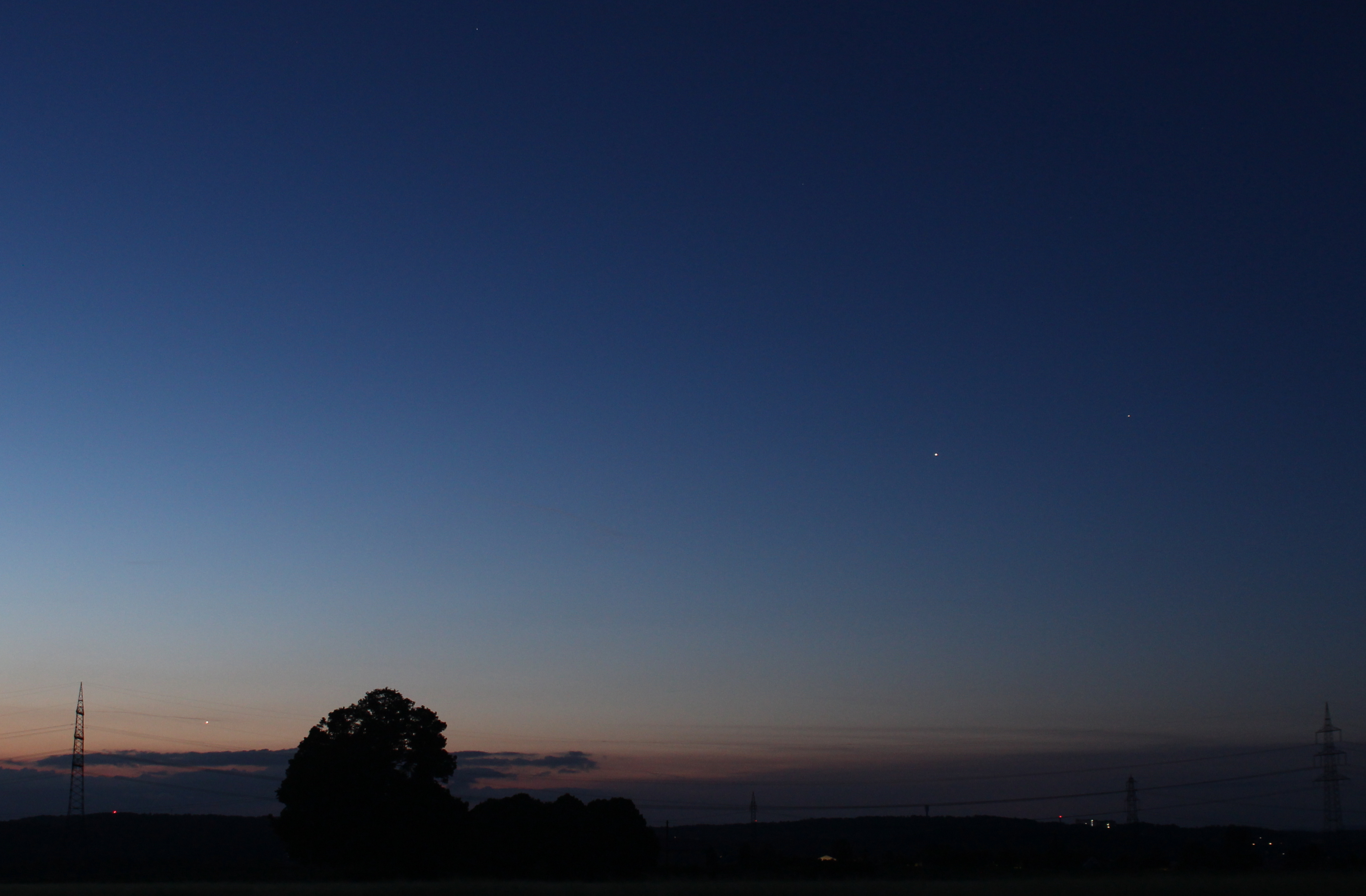 Venus, Mars und Jupiter in der Morgendämmerung, aufgenommen nordwestlich des Sindelfinger Ortsteils Maichingen.