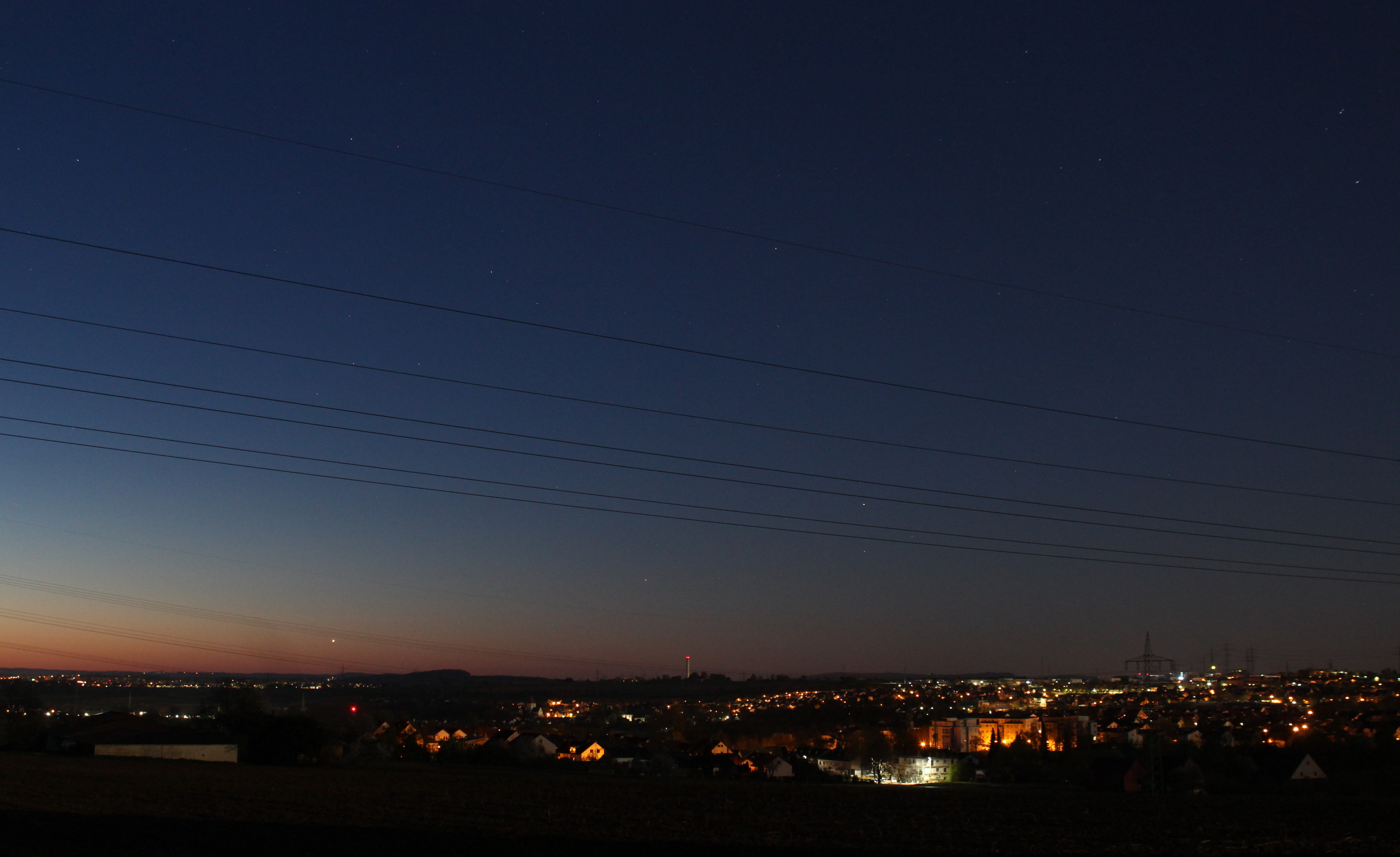 Venus, Mars und Saturn in der Morgendämmerung über Freiberg am Neckar.