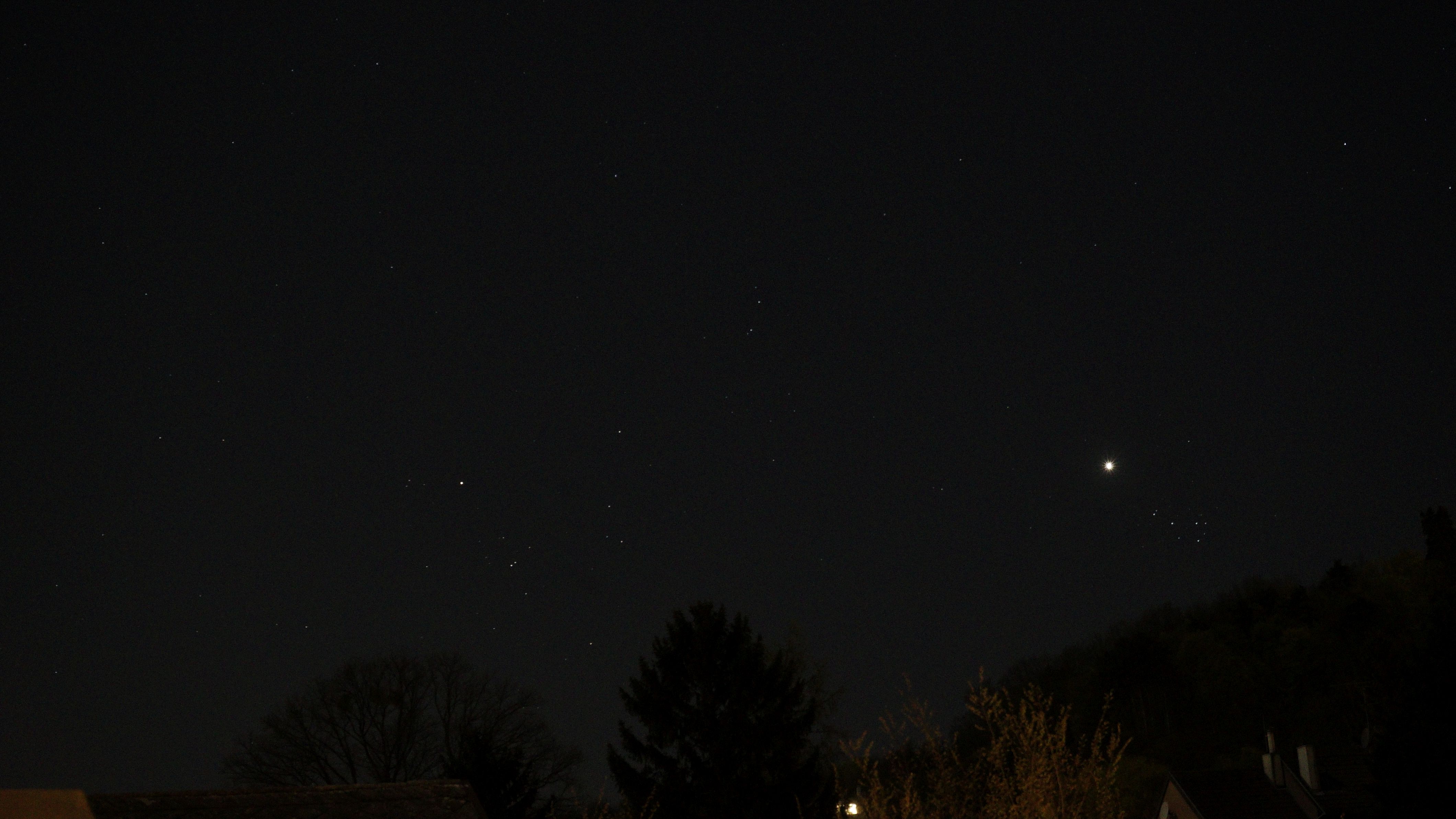 Durch die Hochdruckwetterlage und den verminderten Flugverkehr ist die Luft auch am Rande der Großstadt sehr transparent! So konnte man die Venus nach ihrem Durchgang durch die Pleiaden noch knapp über dem Horizont fotografieren.