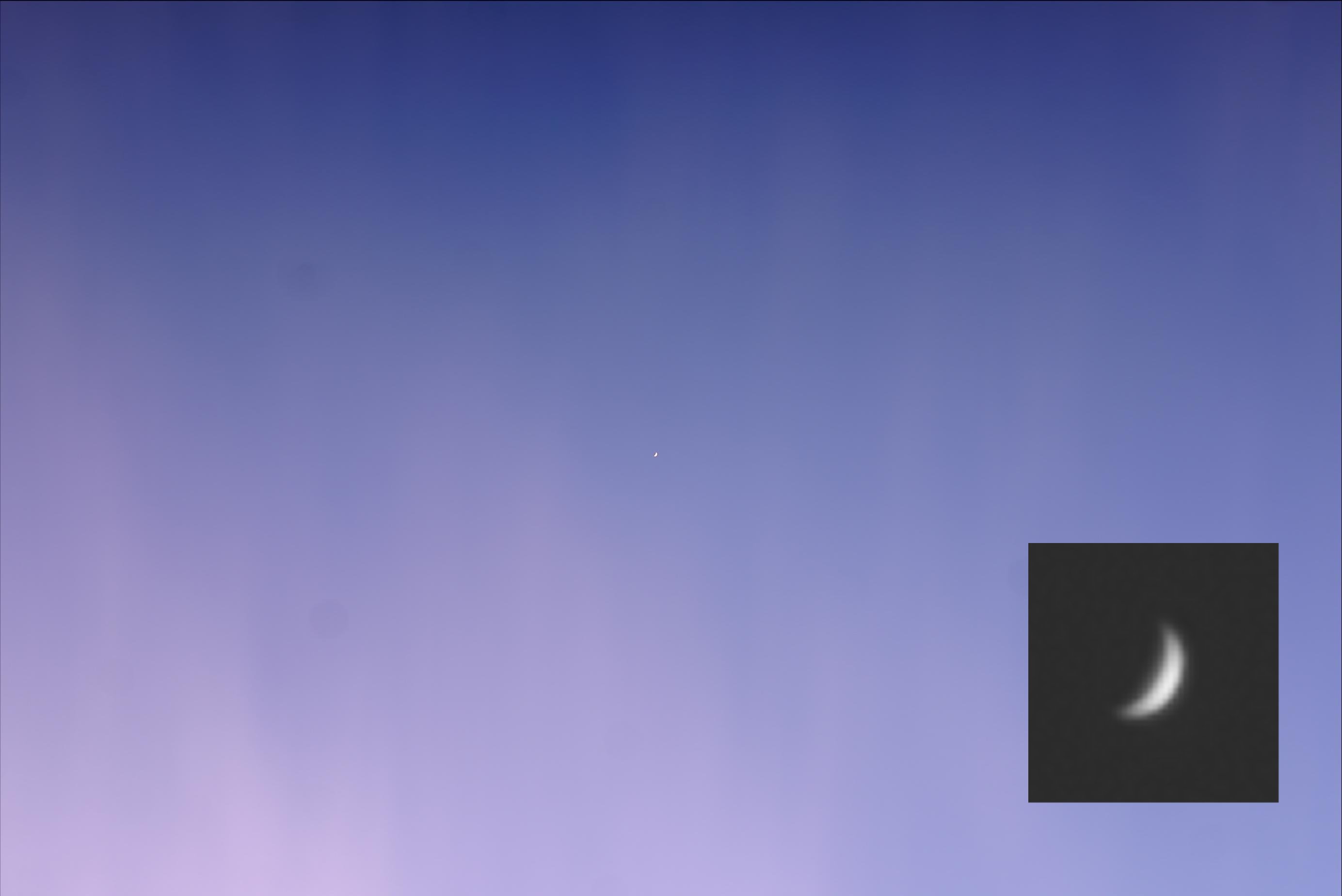 Am 17. Februar suchte ich die Venus in der Mittagsstunde ... und fand sie dann auch. Interessant zu sehen, wie klar und deutlich man sie im blauen Himmel orten und beobachten kann. Die Vergrößerung wurde mit einem ETX125 gemacht und eingefügt.