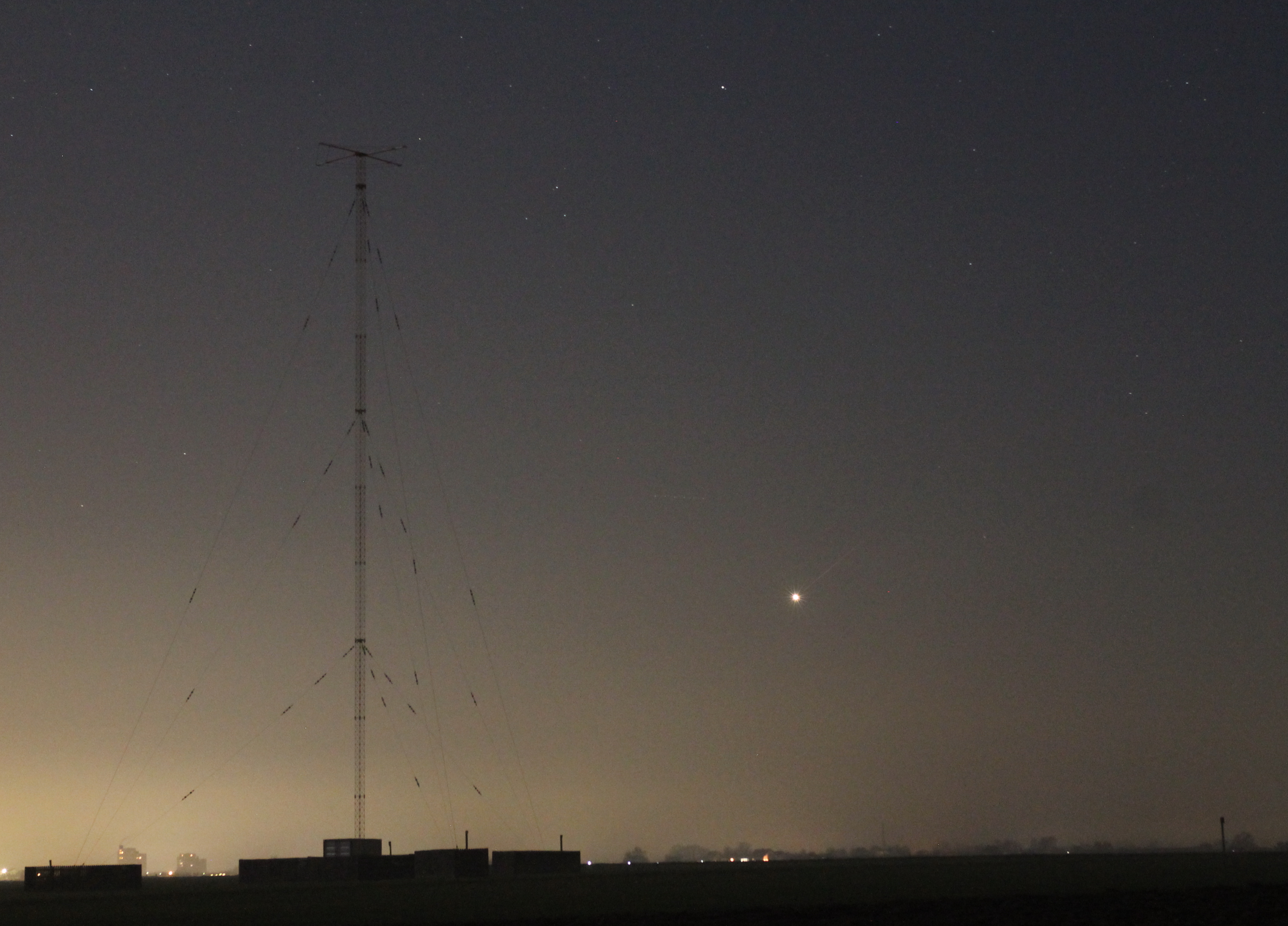 Am Abend des 12. Dezember 2013 fotografierte ich den Planeten Venus neben dem Mittelwellensendemast Hirschlanden