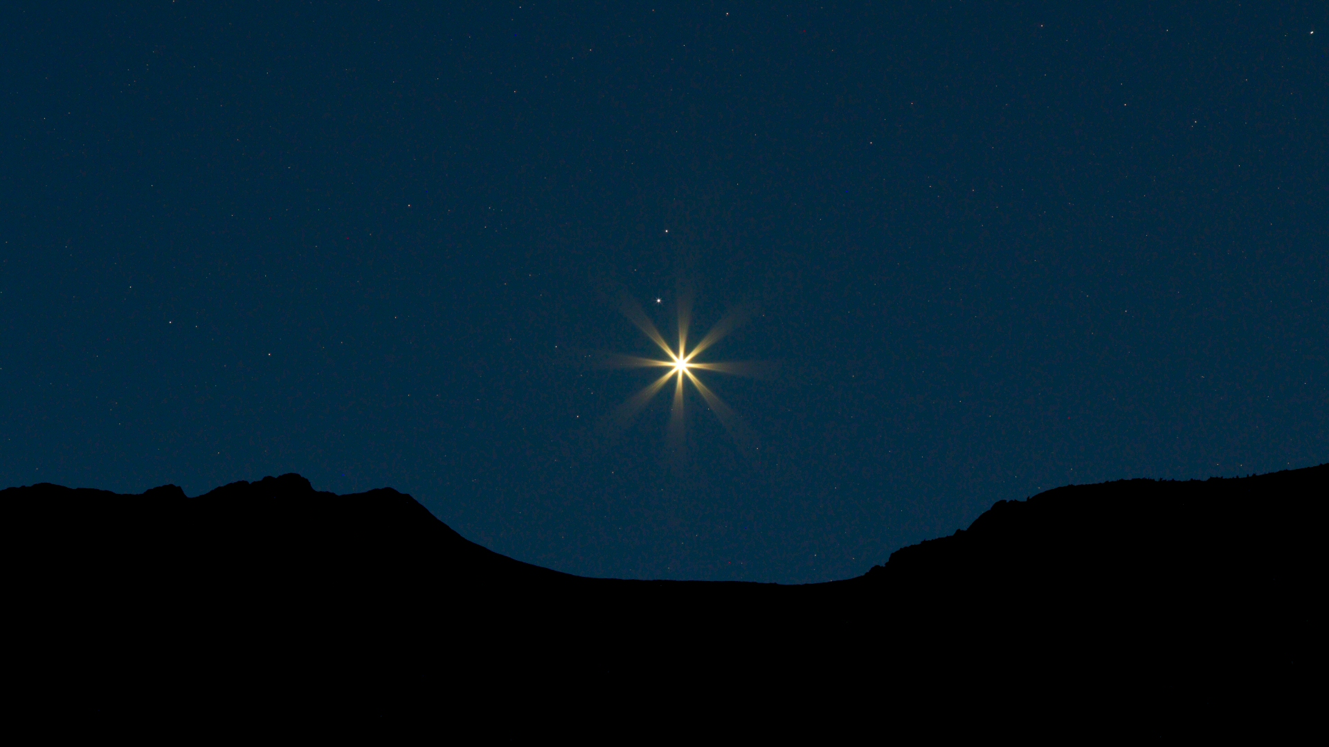Unser »höllischer« Nachbar im Sonnensystem. Die Venus als Morgenstern, aufgenommen am 13. November 2023 über den chilenischen Anden. Der Venusaufgang ist ein allnächtliches Highlight in der Atacamawüste. Nach einer dunklen Nacht in der man die Pracht der Milchstraße bewundern kann, macht sich die Venus bei ihrem Aufgang richtig störend bemerkbar. Durch die extrem trockene und damit klare und dunstfreie Luft in der Atacama ist es beim Venusaufgang so, als würde ein Nachbar einen Flutlichtscheinwerfer auf einen richten. So kündigt die Venus das baldige Ende der Beobachtungsnacht an. Die Dämmerungsphasen sind in der Atacama selbst im Hochsommer sehr kurz. Kein Vergleich zu den nicht enden wollenden Dämmerungsphasen mitteleuropäischer Sommernächte.