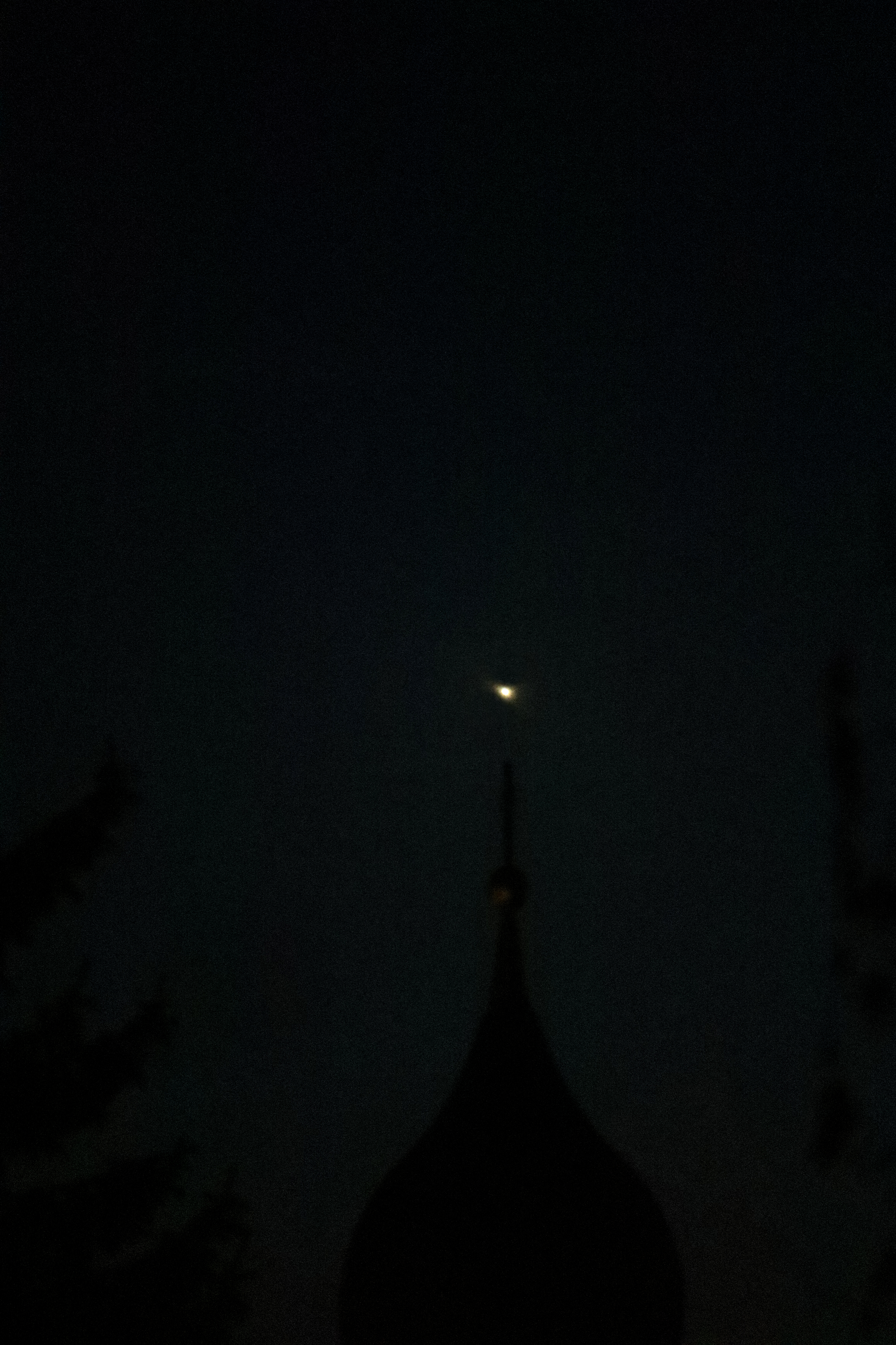 Tag für Tag konnte man beobachten, wie die Venus sich immer mehr an die Kirchturmspitze annähert. Das ist das letzte Foto einer Reihe, die jetzt durch Regenwetter abgebrochen wurde.