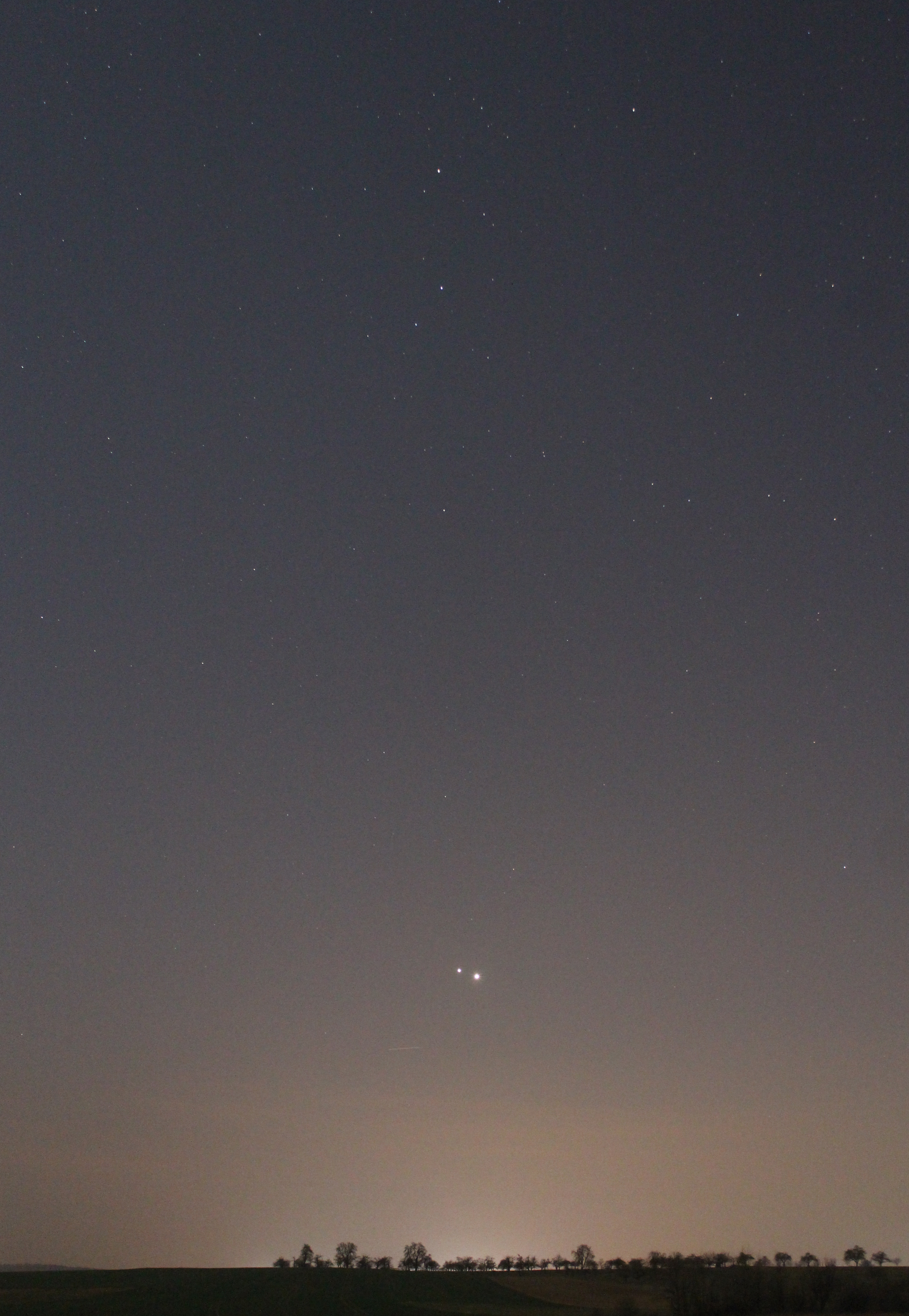 Venus und Jupiter am Abendhimmel, aufgenommen westlich des Sindelfinger Ortsteils Maichingen.