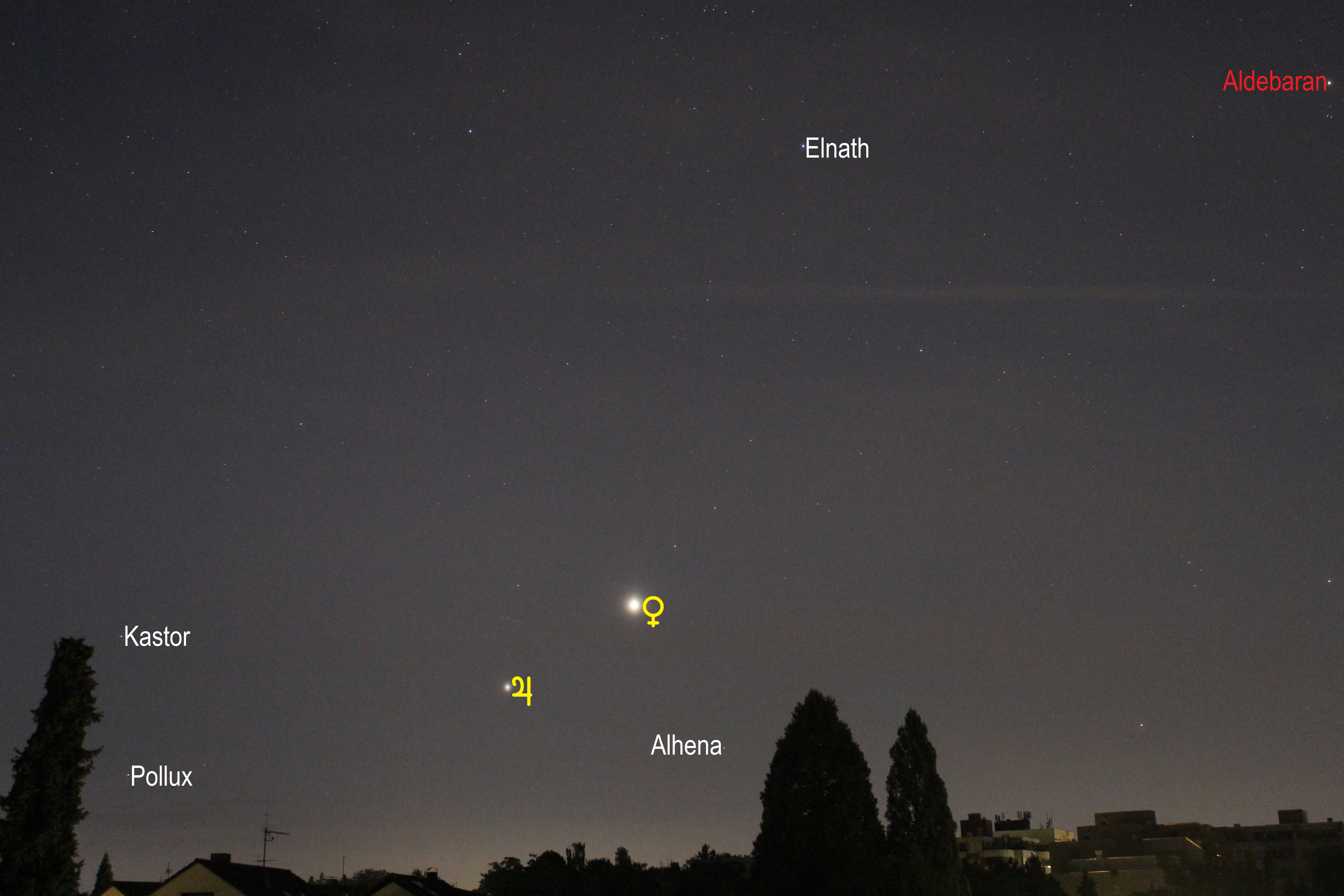 Leserbilder Astronomie: Venus und Jupiter am Morgenhimmel (Objekte beschriftet)