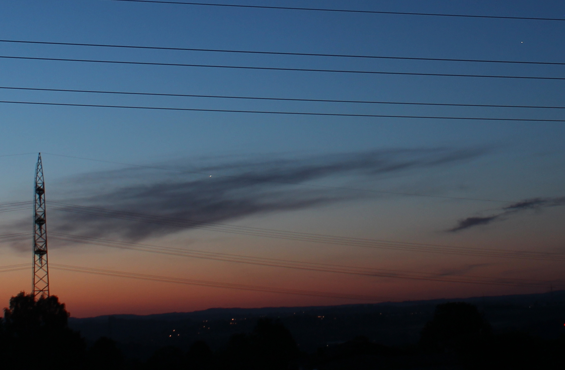 Venus und Jupiter in der hellen Morgendämmerung, aufgenommen nordwestlich von Freiberg am Neckar.