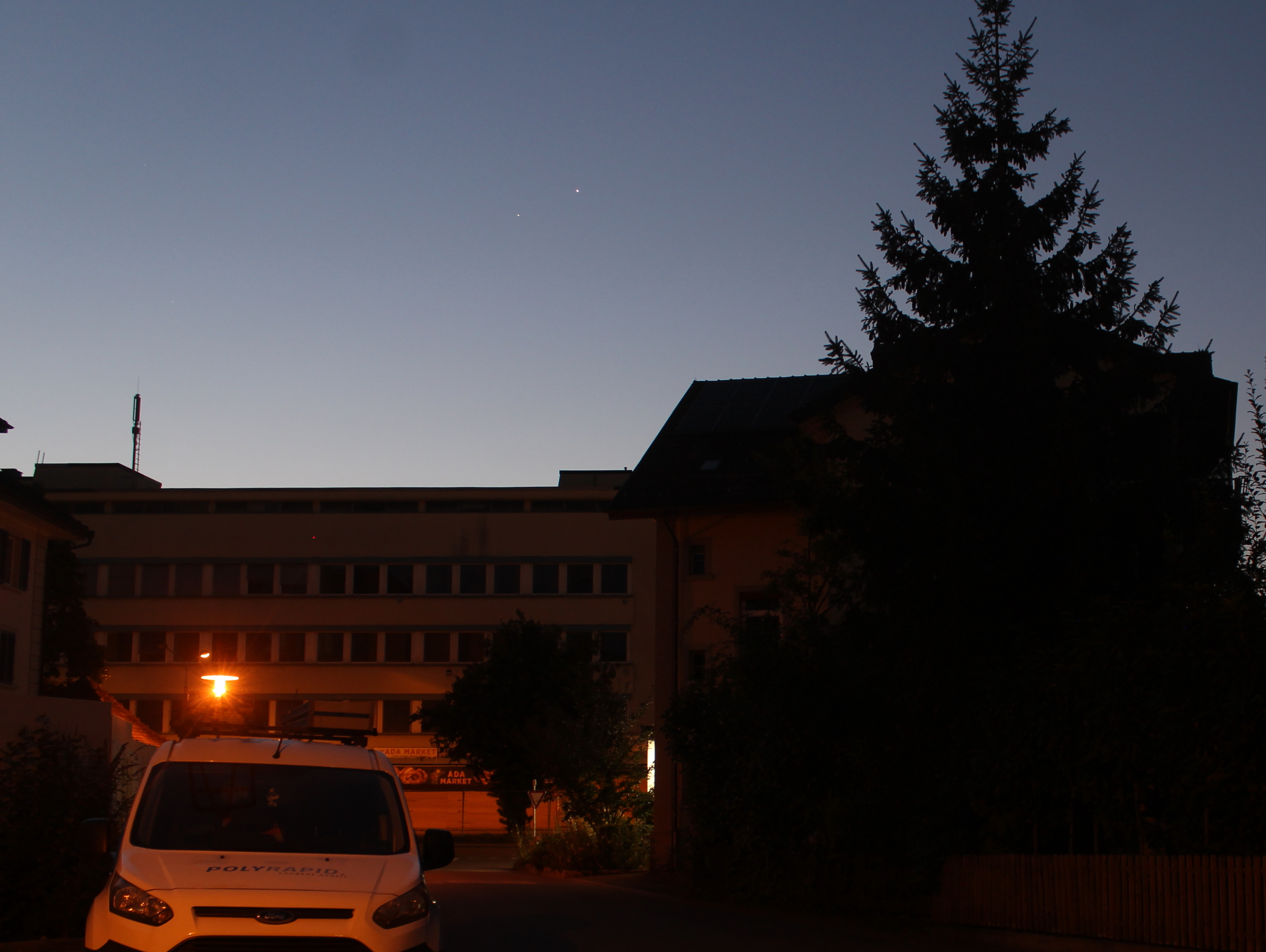 Venus und Jupiter in der Morgendämmerung über Effretikon (Kanton Zürich, Schweiz)