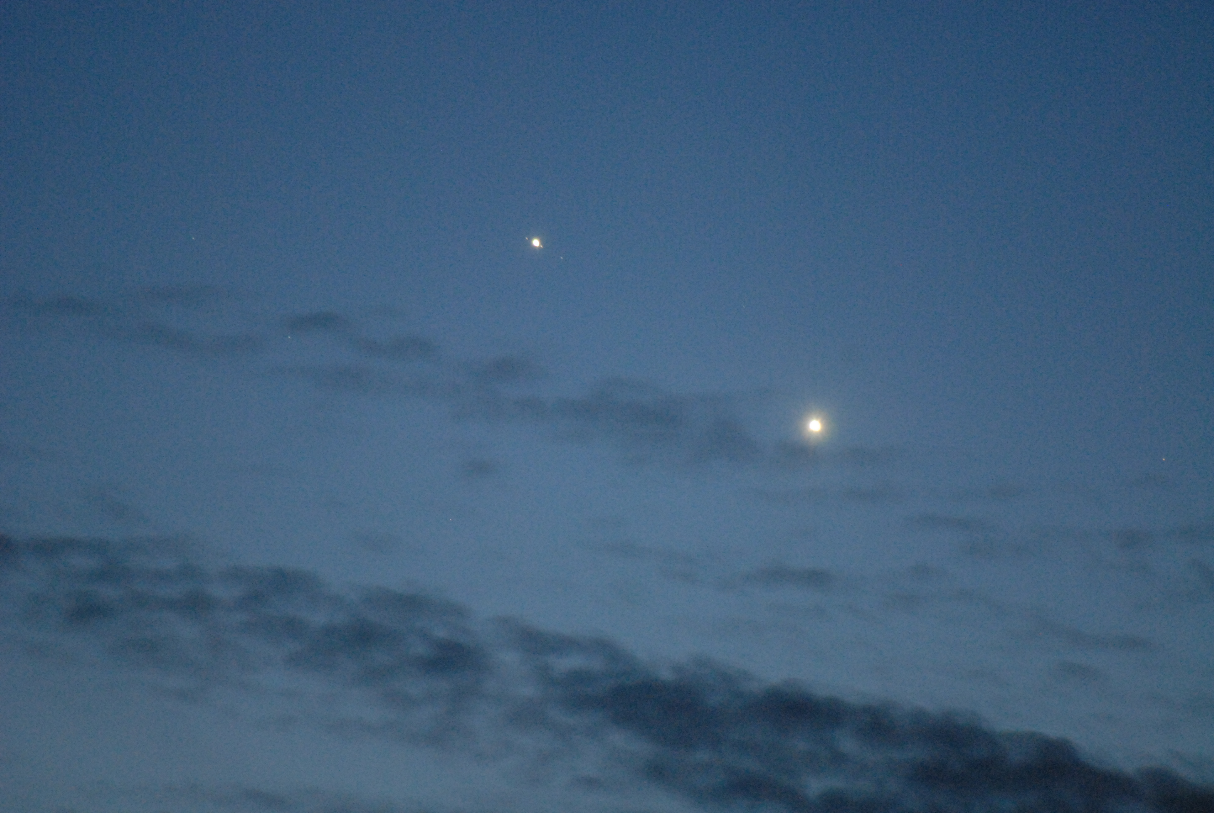 Als Ich die Annäherung von Venus und Jupiter fotografierte. stellte ich fest, dass bereits bei einer Belichtungszeit von 1,8 s drei der Jupitermonde zu sehen waren.