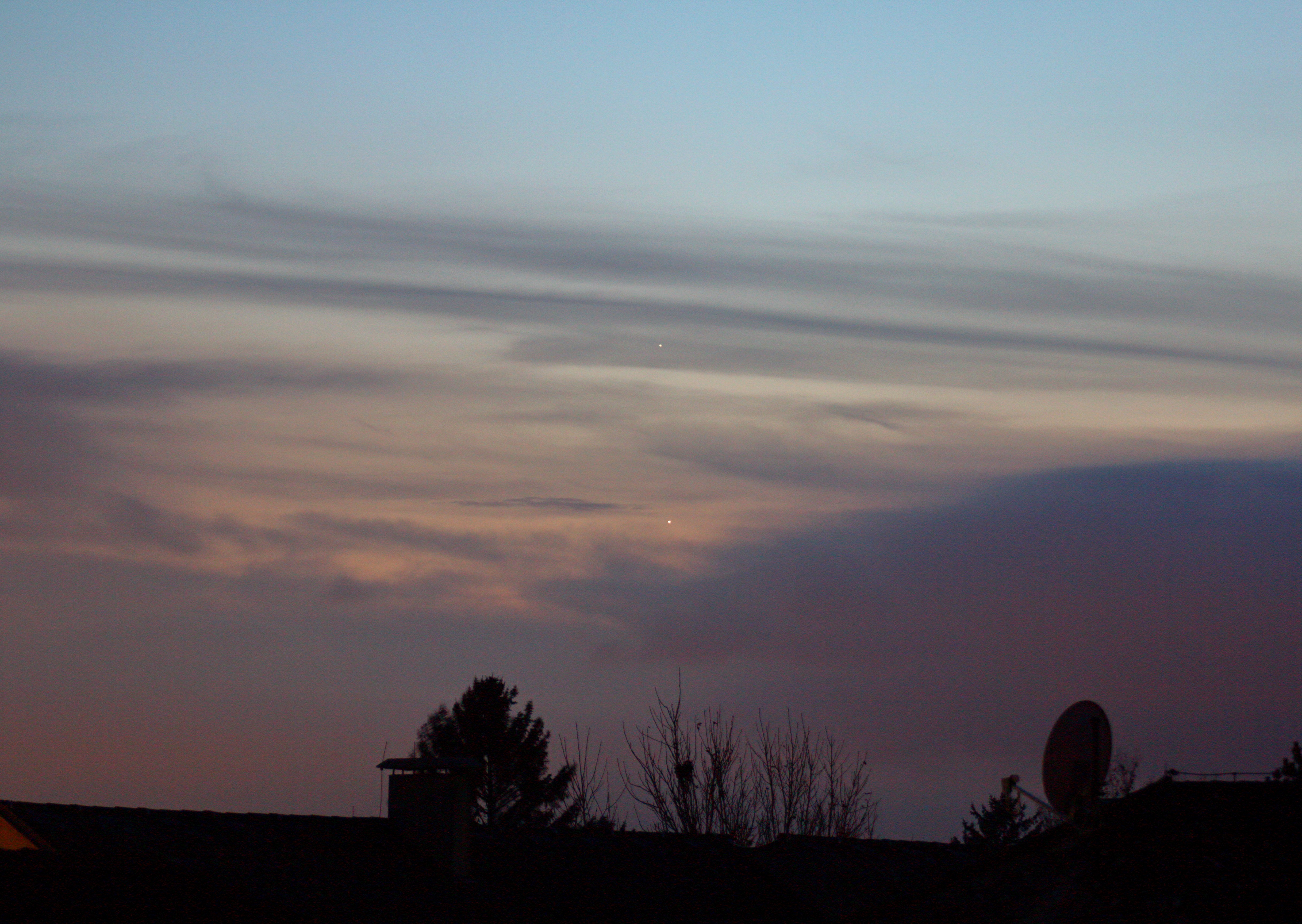 Ich hatte Glück dass die beiden Planeten durch den aufziehenden Hochnebel schimmerten. Winkeldistanz: 1,7 Grad, am 24. November sind sie noch ein klein wenig näher. Mit freiem Auge waren die beiden auch gut zu sehen.