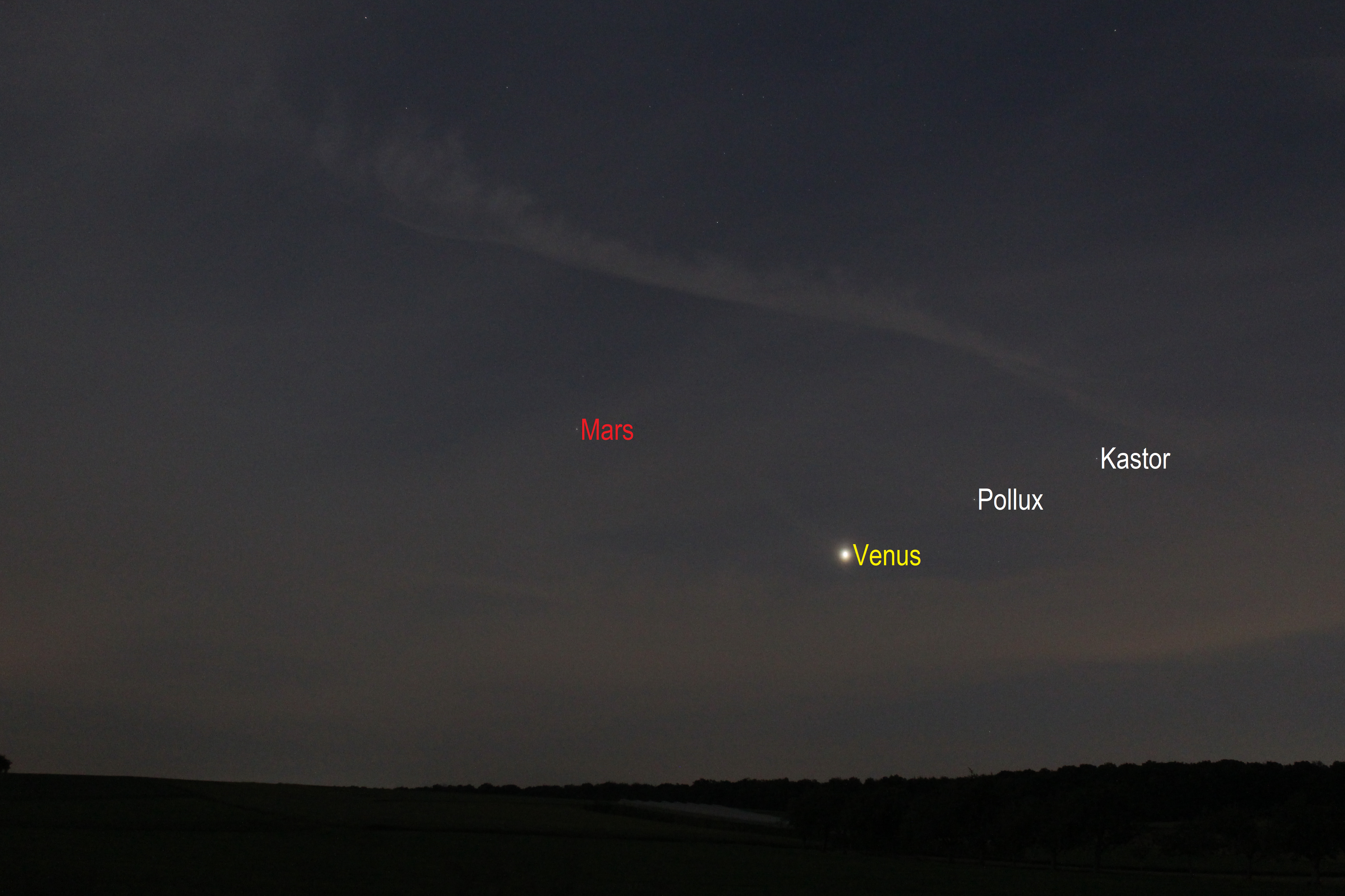 Leserbilder Astronomie: Venus und Mars am Abendhimmel (Objekte beschriftet)