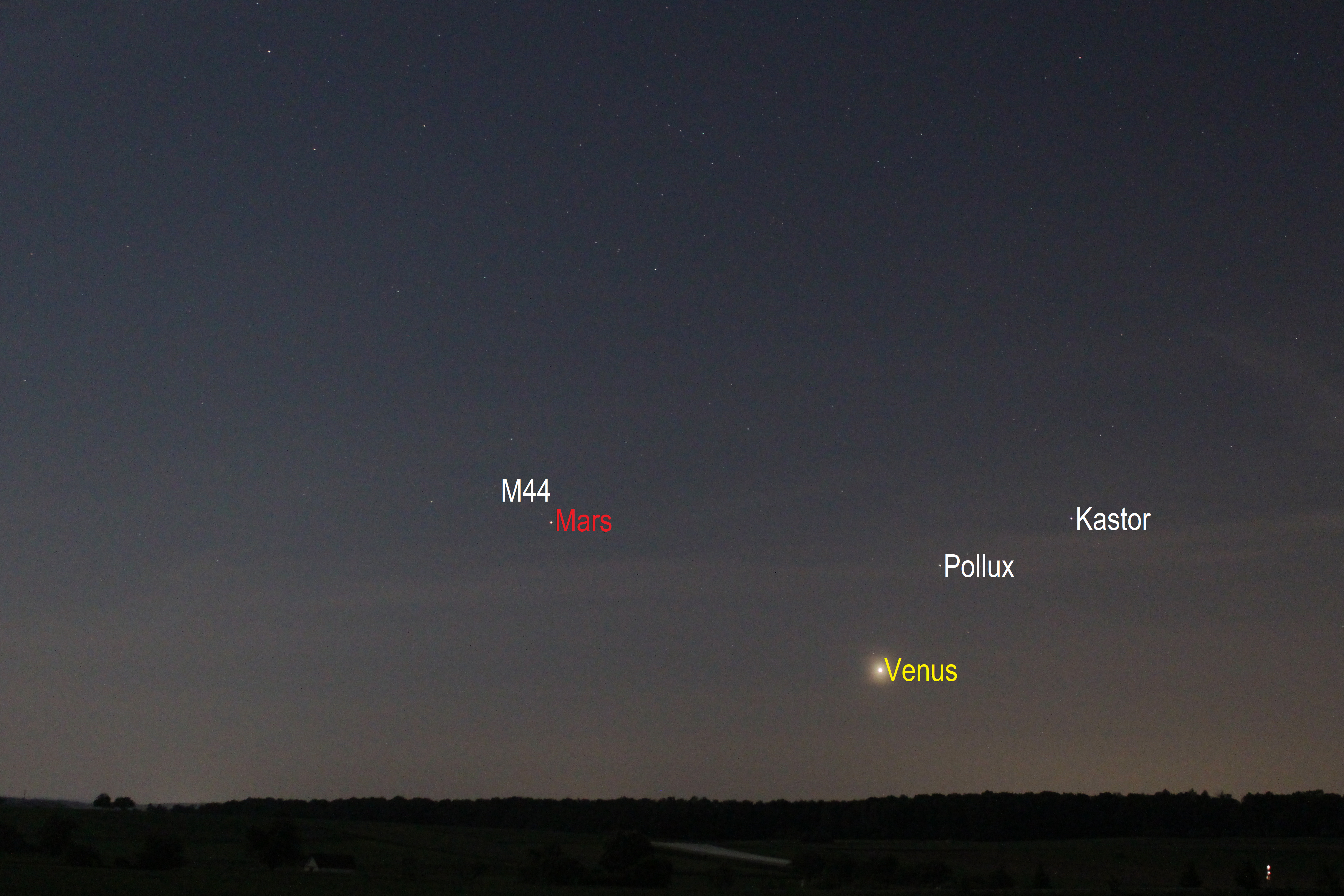 Venus und Mars am Abendhimmel, aufgenommen westlich des Sindelfinger Ortsteils Maichingen.