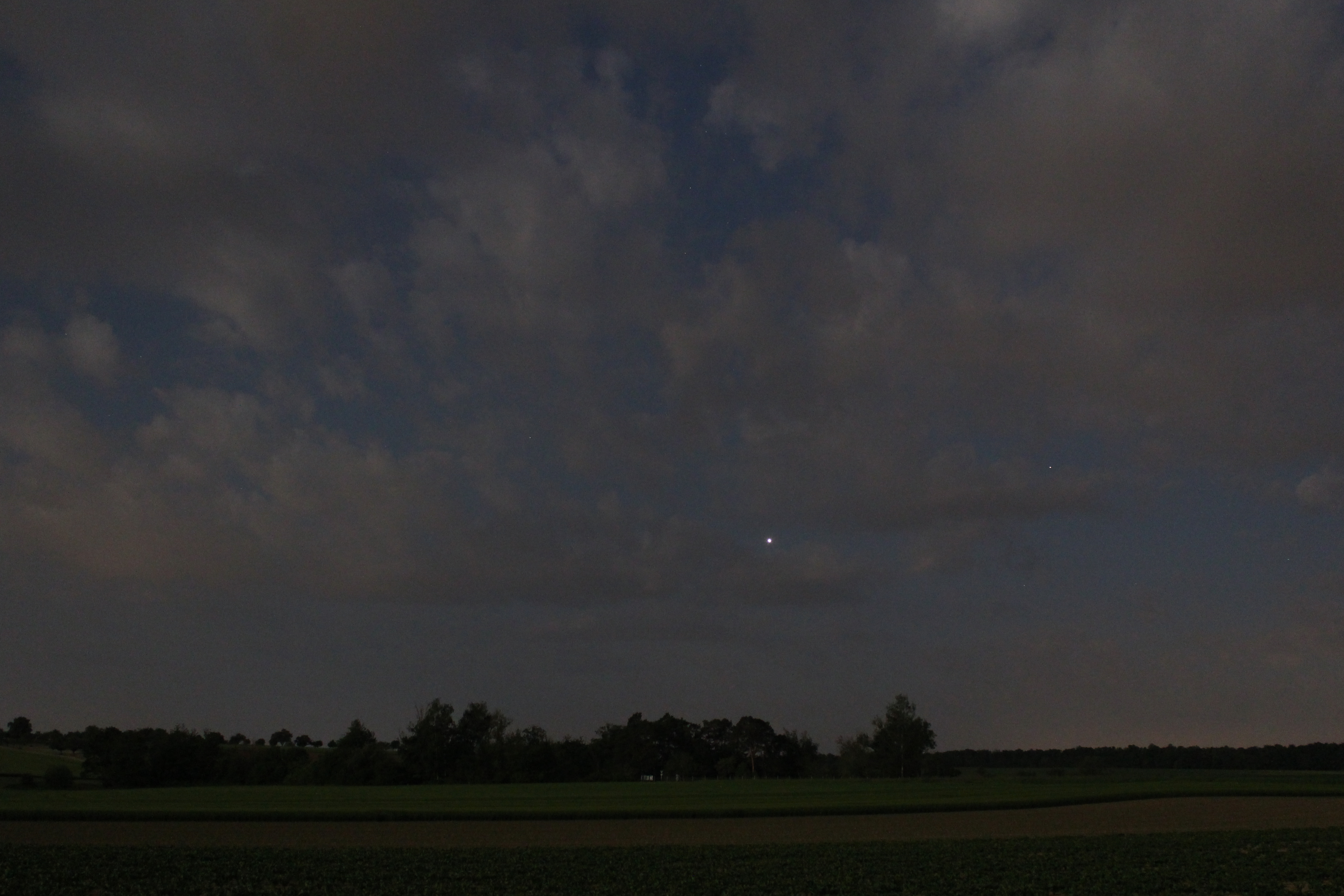 Venus und Mars am Abendhimmel, aufgenommen bei stark wolkigem Himmel westlich des Sindelfinger Ortsteils Maichingen.