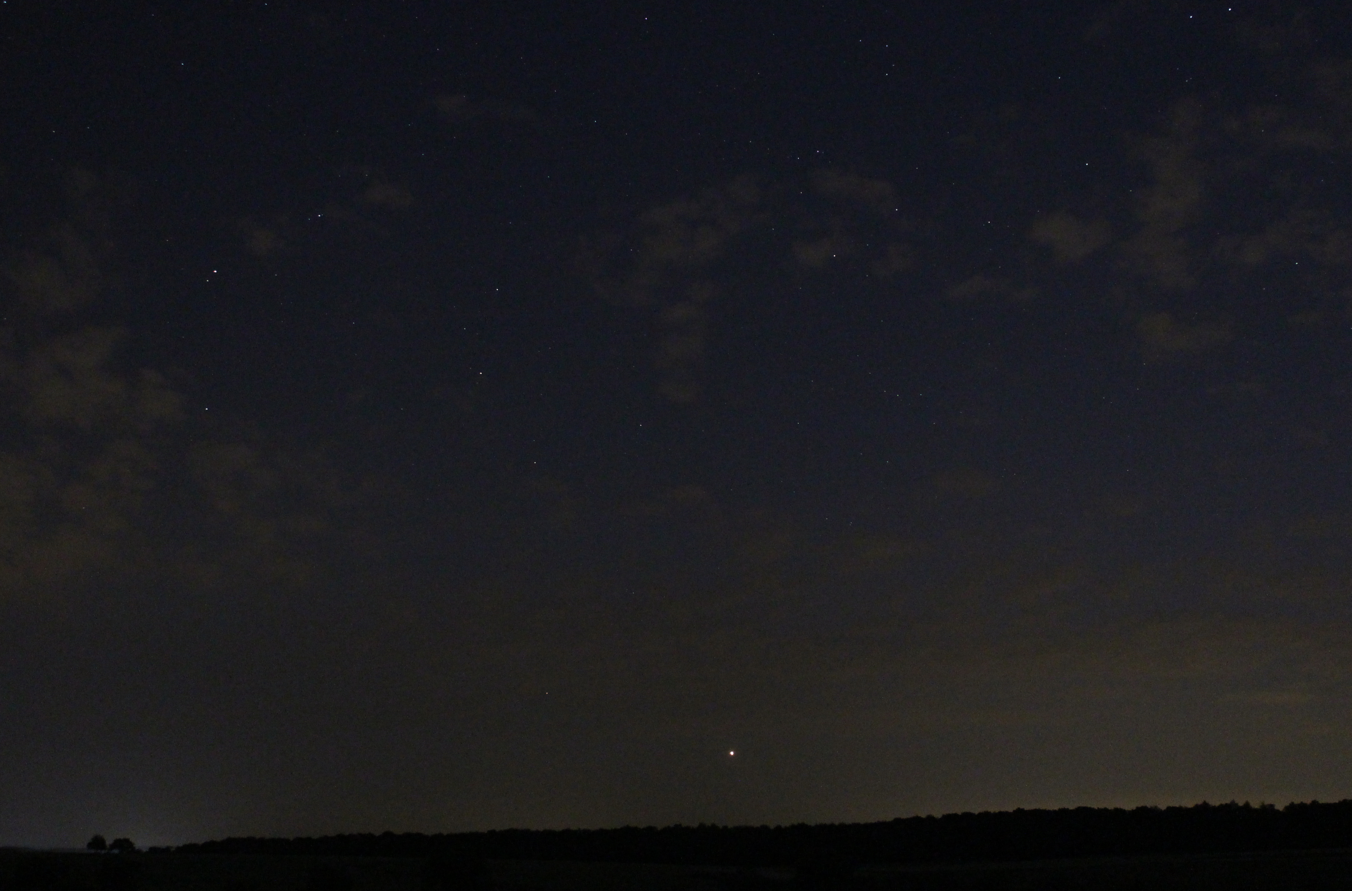 Unsere beiden Nachbarplaneten am Abendhimmel, fotografiert bei teilweise bewölktem Himmel westlich vom Sindelfinger Ortsteil Maichingen.