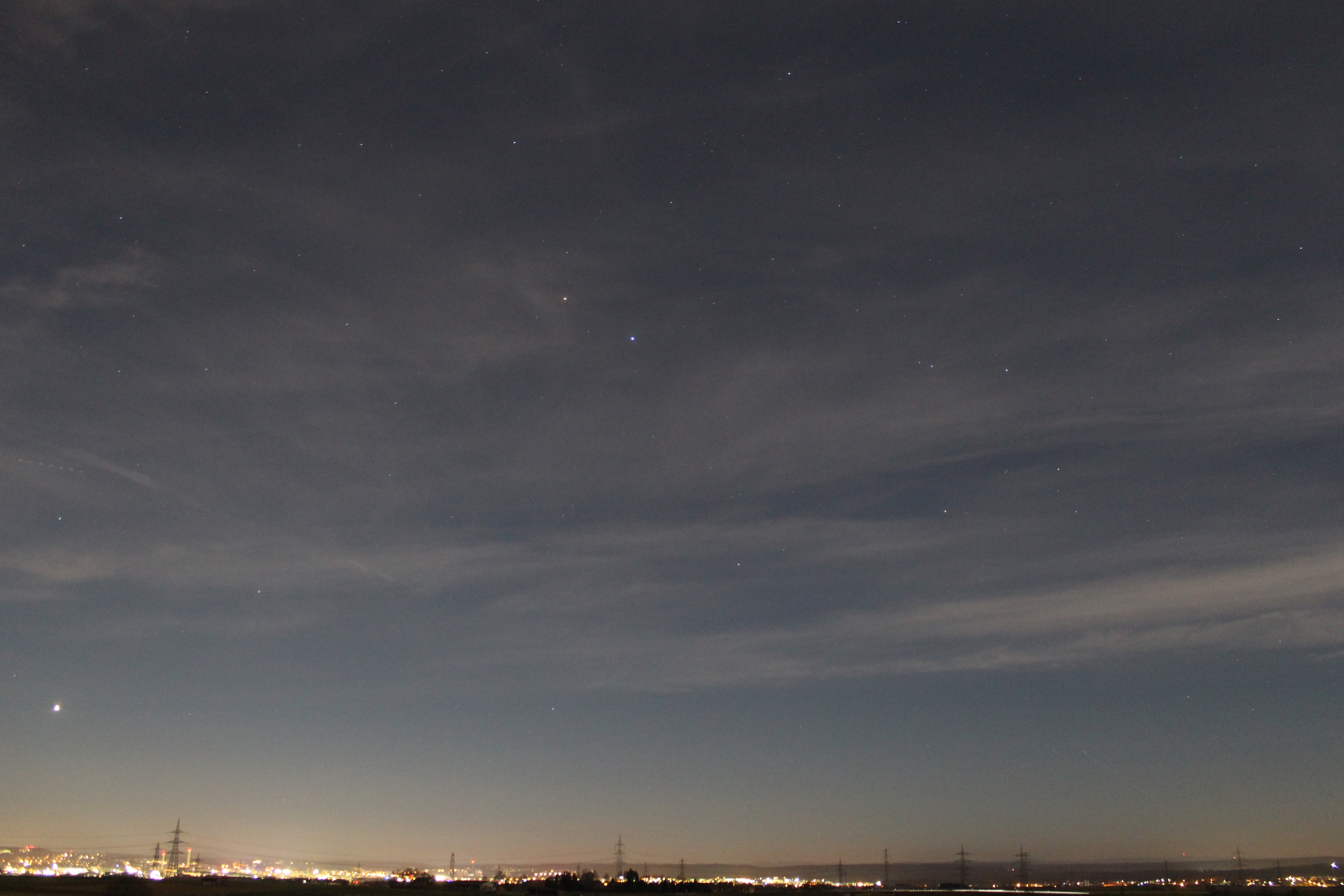 Bei leicht wolkigen Himmel fotografierte ich am Morgen des 2. Weihnachtsfeiertages Venus und Mars am Morgenhimmel