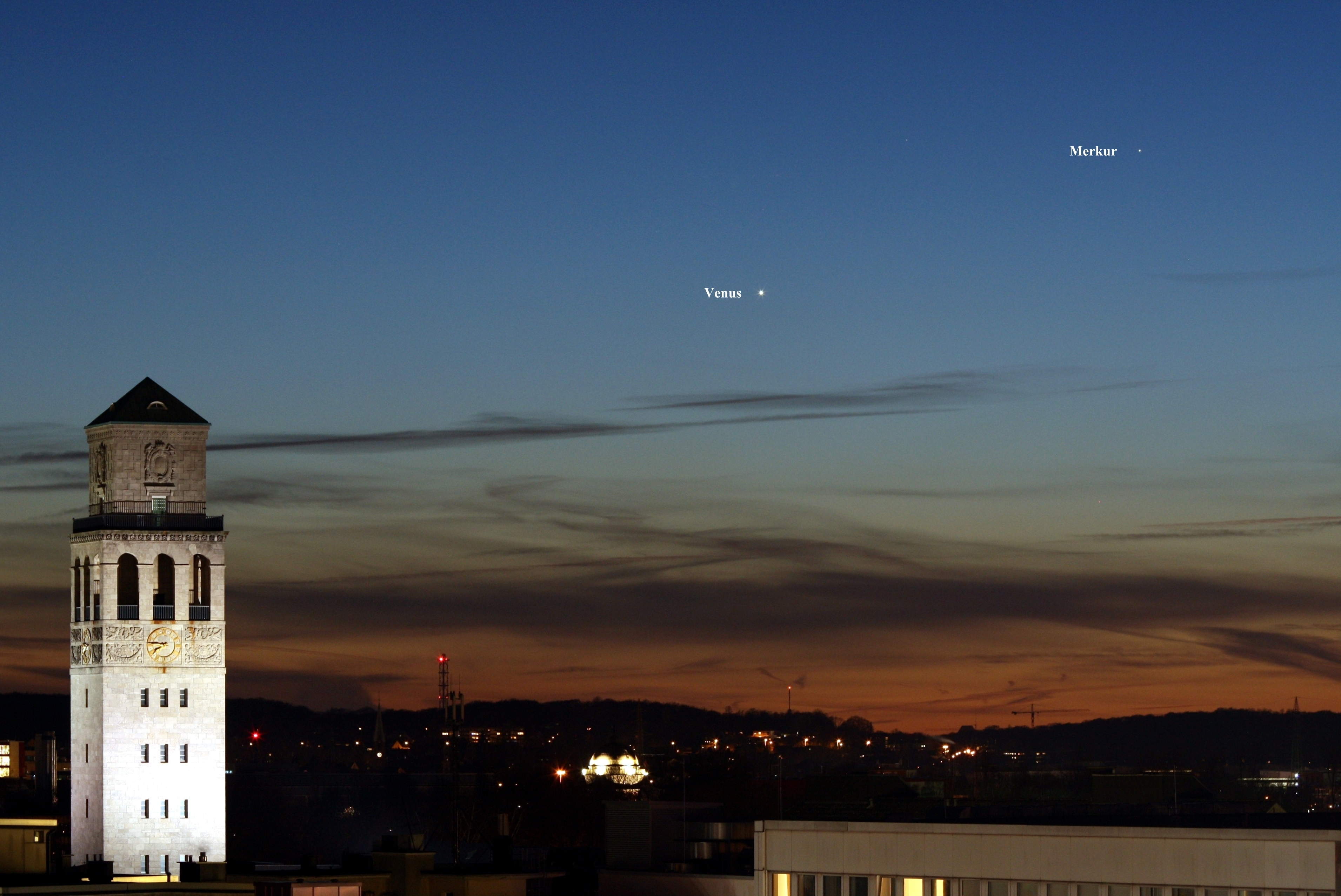 Die Planeten Venus und Merkur in der Abenddämmerung.