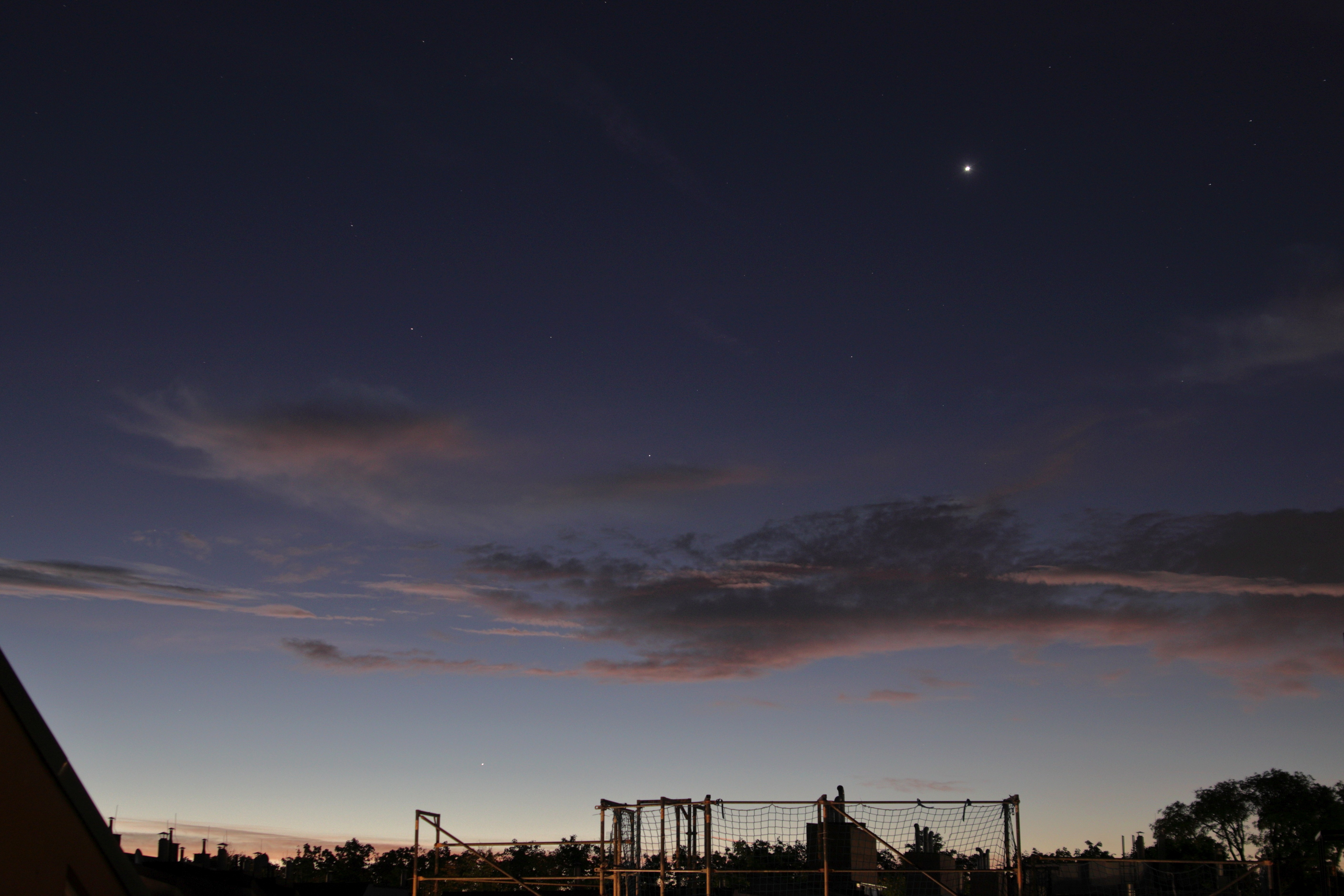 22. September 2023: Venus ist strahlend heller Morgenstern (rechts oben), Merkur hat eine gute Morgensichtbarkeit (links unten, horizontnah, gut mit freiem Auge sichtbar) und dazwischen das Sternbild Löwe mit Regulus zwischen den beiden Planeten. So ein schöner Morgen!