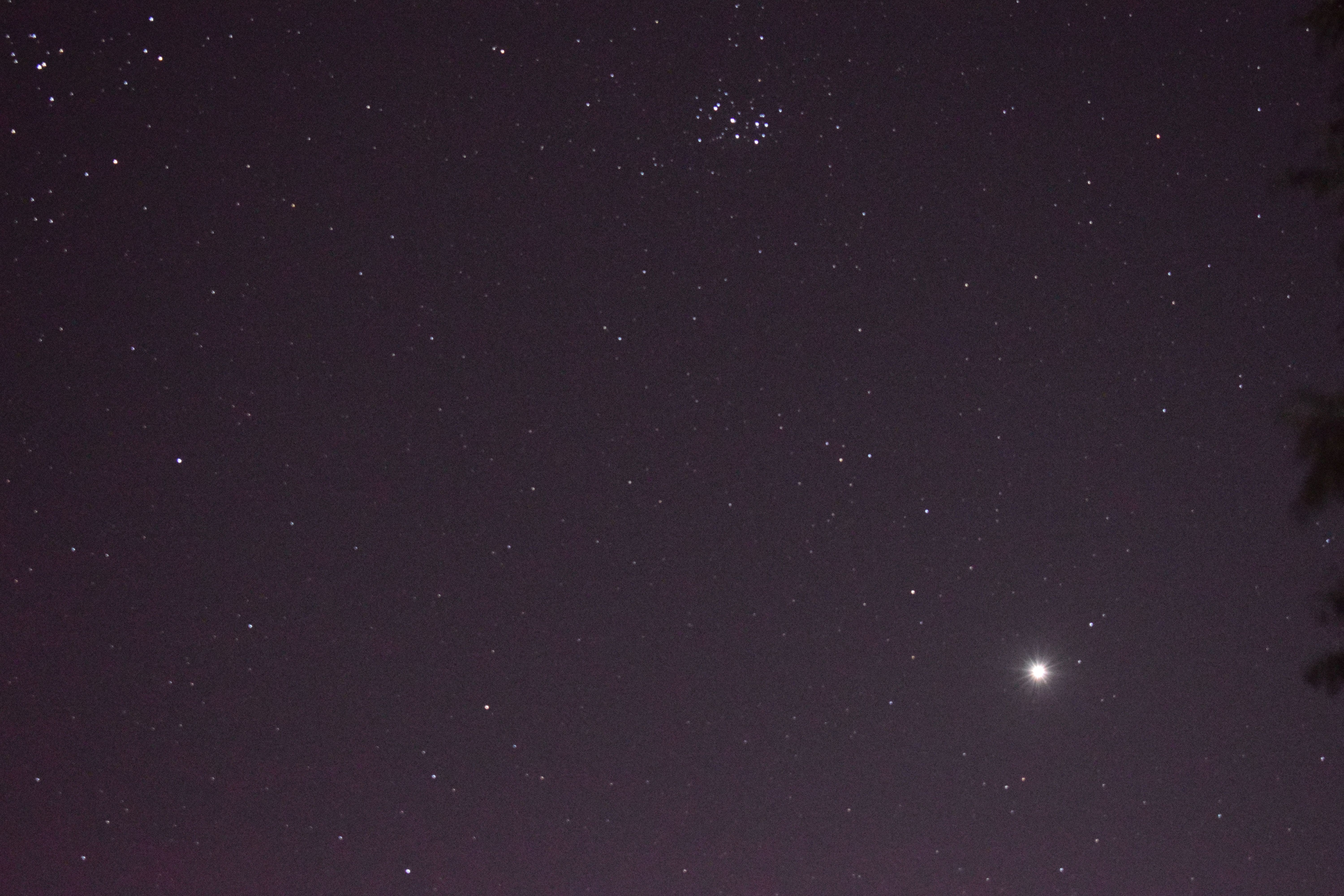 Gestern Abend konnte ich die helle Venus und die Plejaden am Westhimmel aufnehmen.