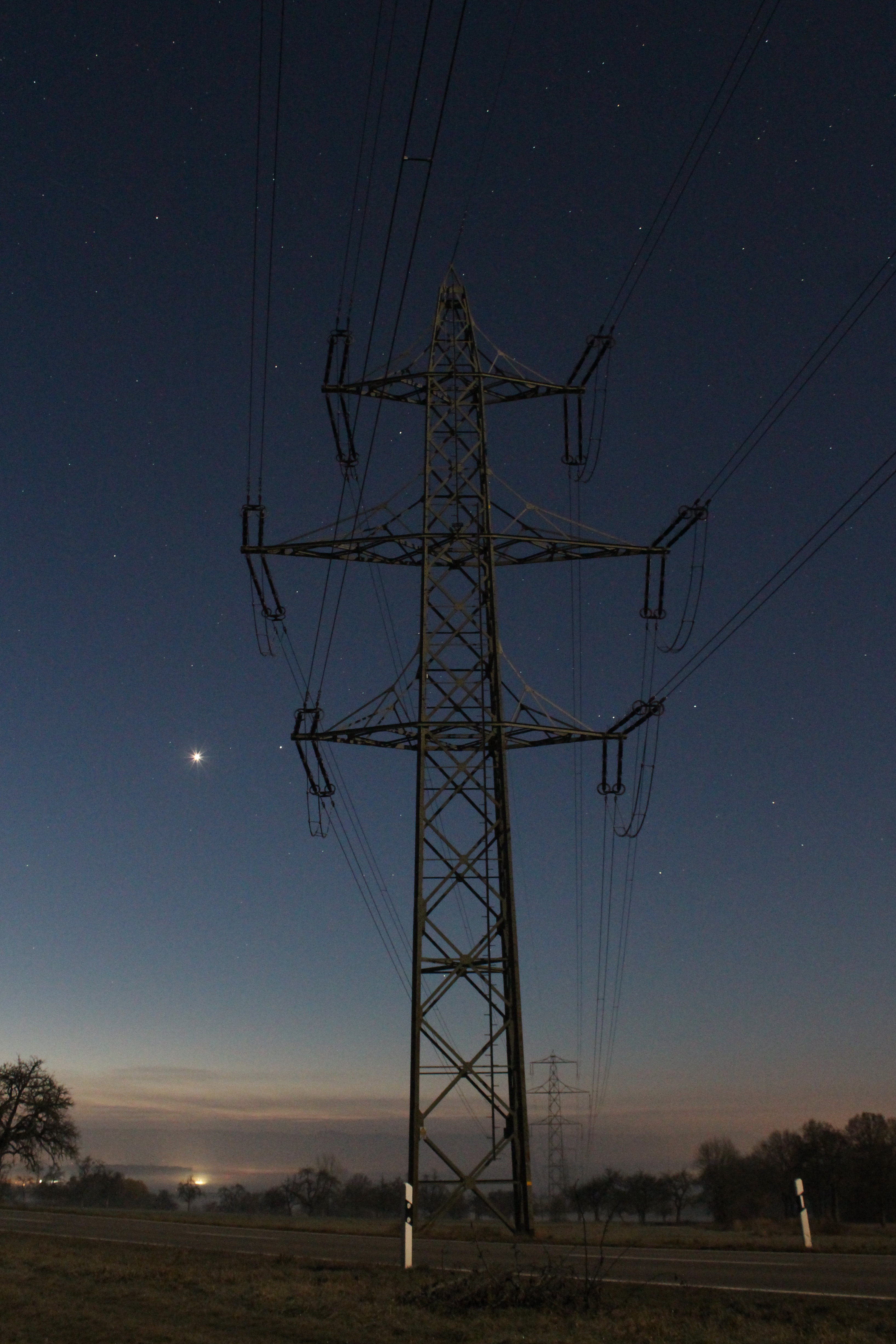Am Morgen des 25. November 2018 herrschte in den tieferen Lagen des Albvorlands nordwestlich von Reutlingen verbreitet Bodennebel. Allerdings war am Schönbuchrand westlich von Walddorf-Häslach der Himmel klar, was ich für zwei Fotos des Morgenhimmels mit dem Planeten Venus, der nur wenige Grad östlich von Spika steht, nutzte. Im Vordergrund beider Bilder befindet sich der Mast 195 der Hochspannungsleitung Hoheneck-Herbertingen.