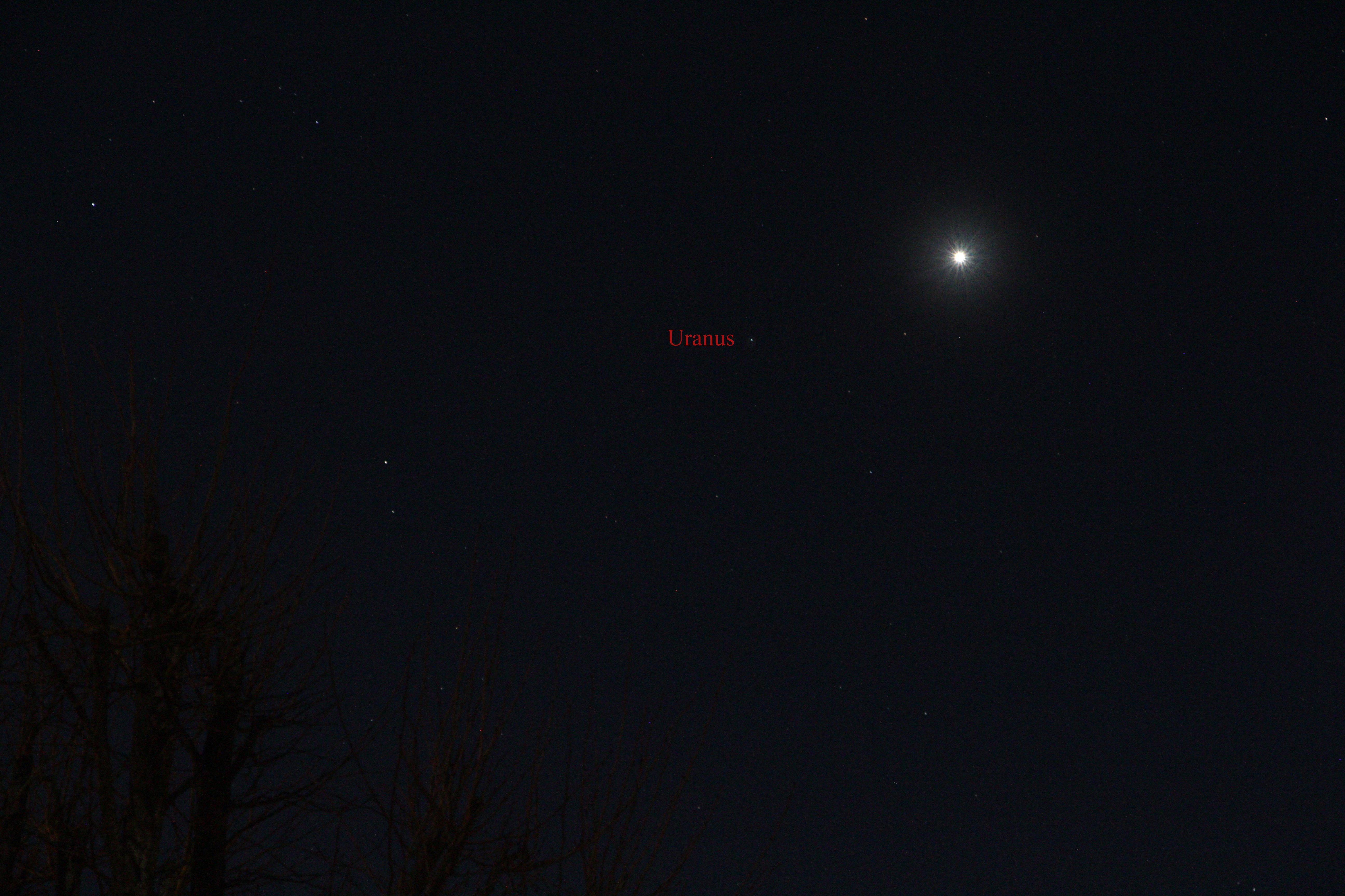 Nachdem in den letzten Tagen schlechtes Wetter war, hat es heute endlich geklappt mit meinem ersten Foto von Venus und Uranus.