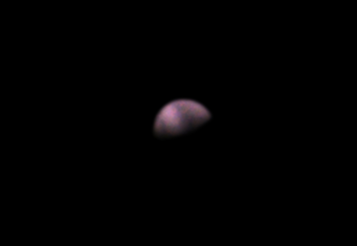 Zu 78,4 Prozent beleuchtet und mit einem scheinbaren Durchmesser von 13,5 Bogensekunden war die Venus wieder mal eine Aufnahme wert. Bei knapp 20 Grad Höhe und relativ ruhiger Luft nahm ich den Planeten mit einer Farbkamera und UV-Filter auf.