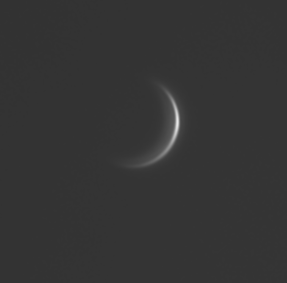 Bei sehr schlechtem Seeing konnte ich doch noch die dünne Sichel der Venus aufnehmen.