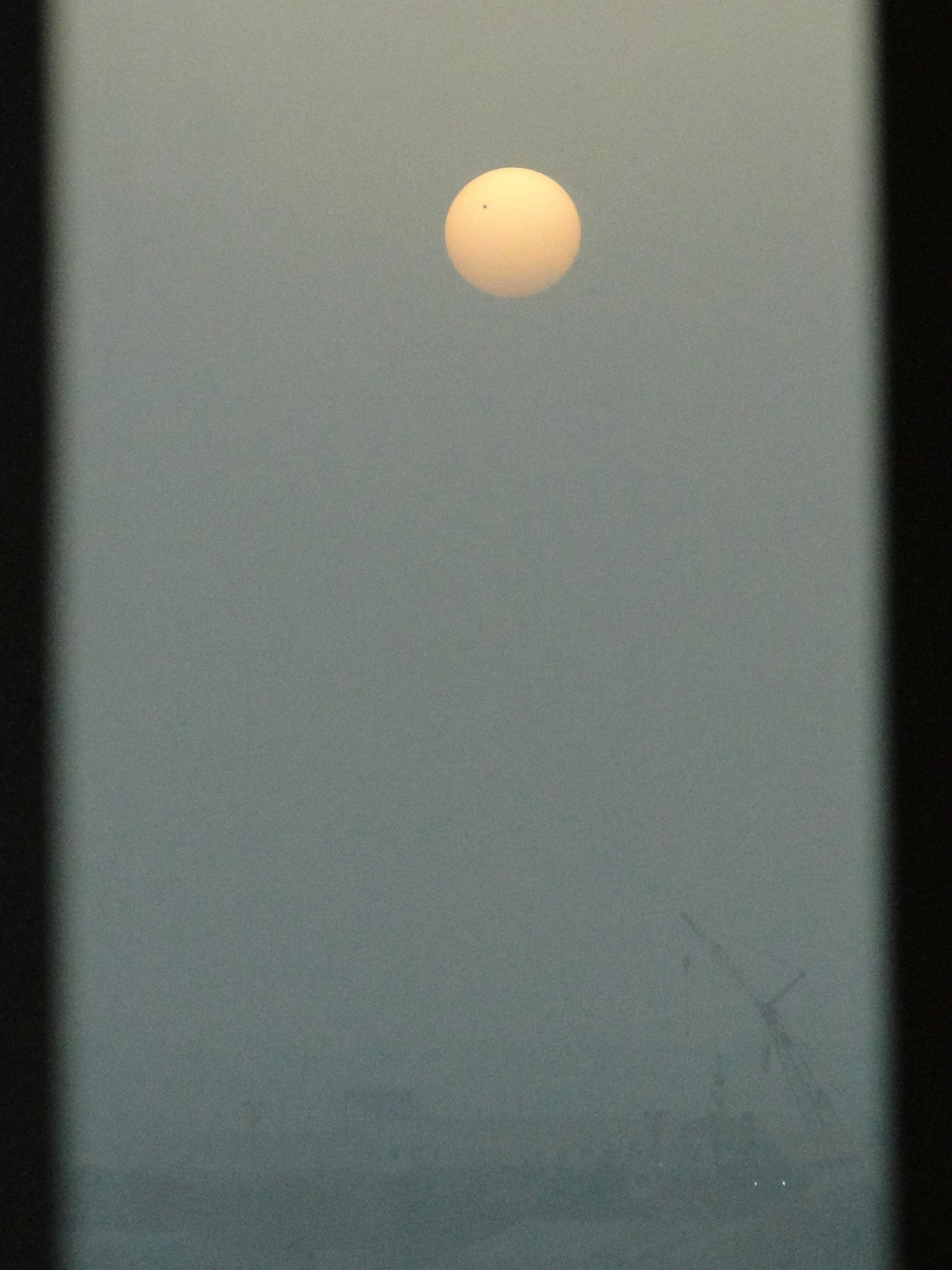 In der Vorahnung, dass der Venustransit in Deutschland hinter Wolken stattfinden könnte, buchte ich eine Reise dorthin, wo Wolken fast so selten sind, wie Venustransite: in die Wüste. Vom Hotel in Dubai-Ajman aus gelangen diese Aufnahmen bei Sonnenaufgang, der hier um 5:27 Ortszeit (MESZ + 2h) stattfinden sollte. Leider brauchte die Sonne gut 15 Minuten, um sich durch den Morgendunst am Meer zu kämpfen. Trotzdem hatten wir gut 1 1/2 Stunden längere Sichtbarkeit, als in Deutschland - und vor allem: Sichtbarkeit.