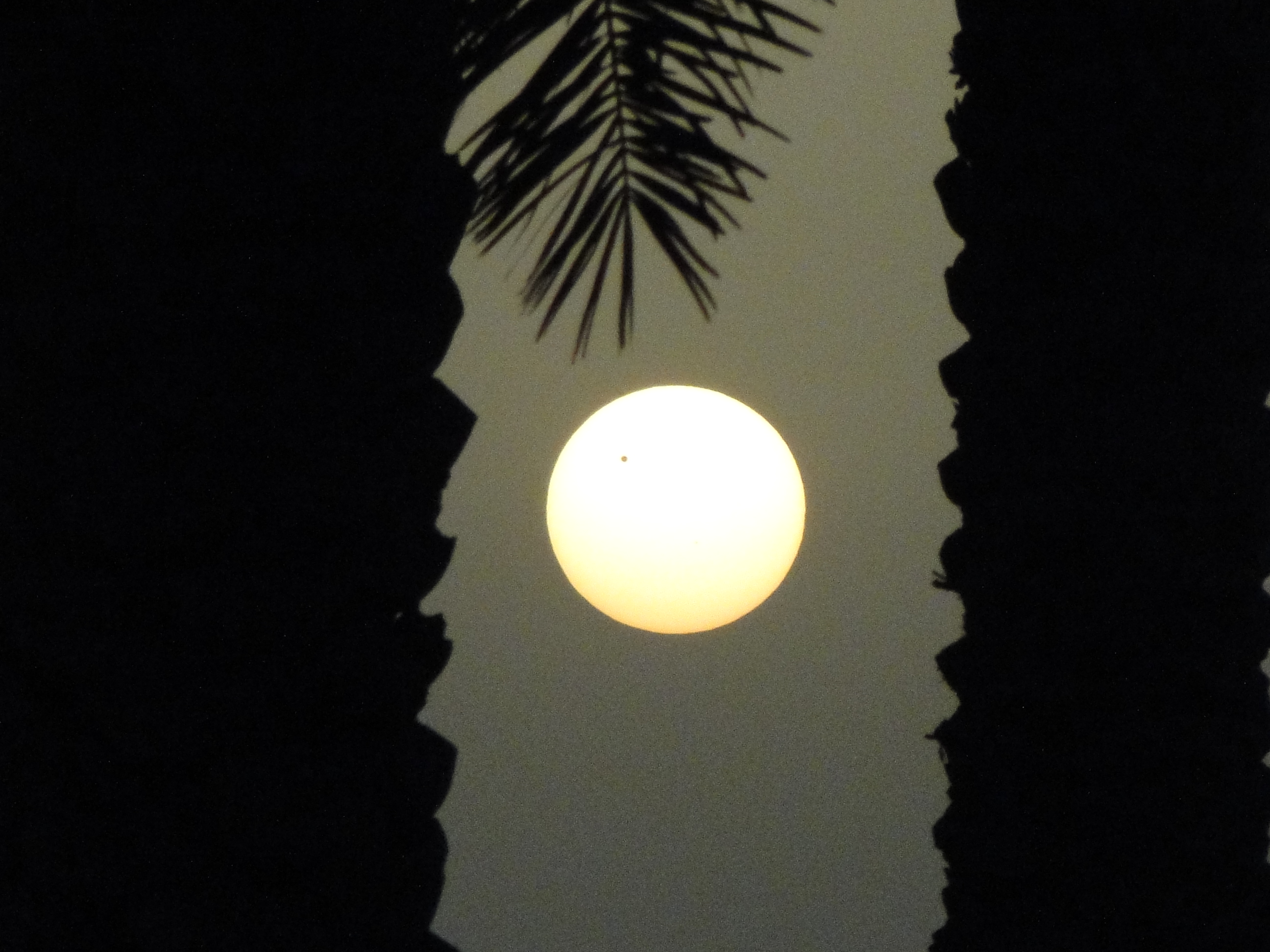 In der Vorahnung, dass der Venustransit in Deutschland hinter Wolken stattfinden könnte, buchte ich eine Reise dorthin, wo Wolken fast so selten sind, wie Venustransite: in die Wüste. Vom Hotel in Dubai-Ajman aus gelangen diese Aufnahmen bei Sonnenaufgang, der hier um 5:27 Ortszeit (MESZ + 2h) stattfinden sollte. Leider brauchte die Sonne gut 15 Minuten, um sich durch den Morgendunst am Meer zu kämpfen. Trotzdem hatten wir gut 1 1/2 Stunden längere Sichtbarkeit, als in Deutschland - und vor allem: Sichtbarkeit.