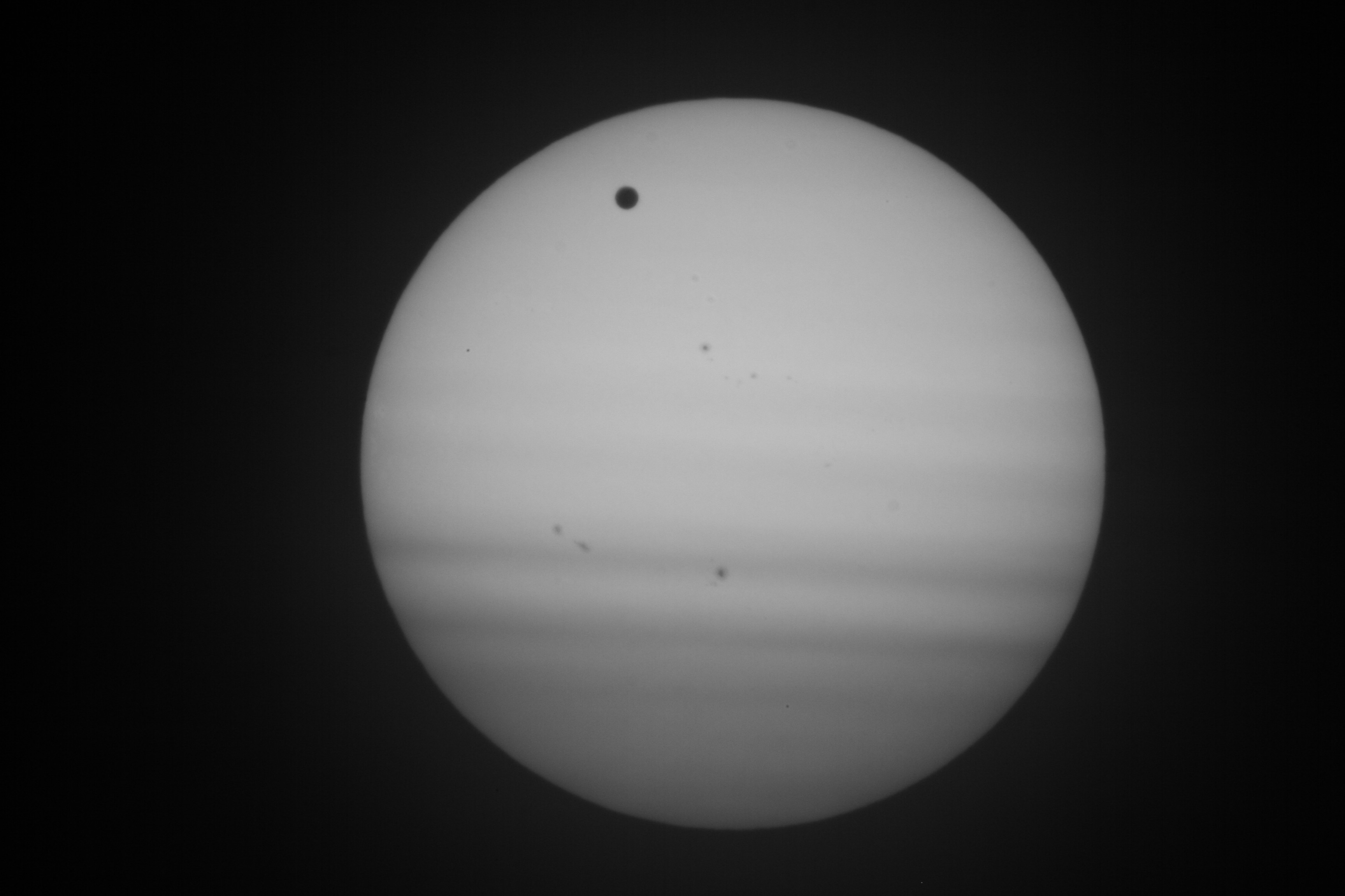 Venustransit 2012 mit Sonnenflecken, 300 km gefahren, um schönes Wetter zu haben. Aufnahmeort: Frankfurt/Oder 5:45 Uhr MESZ