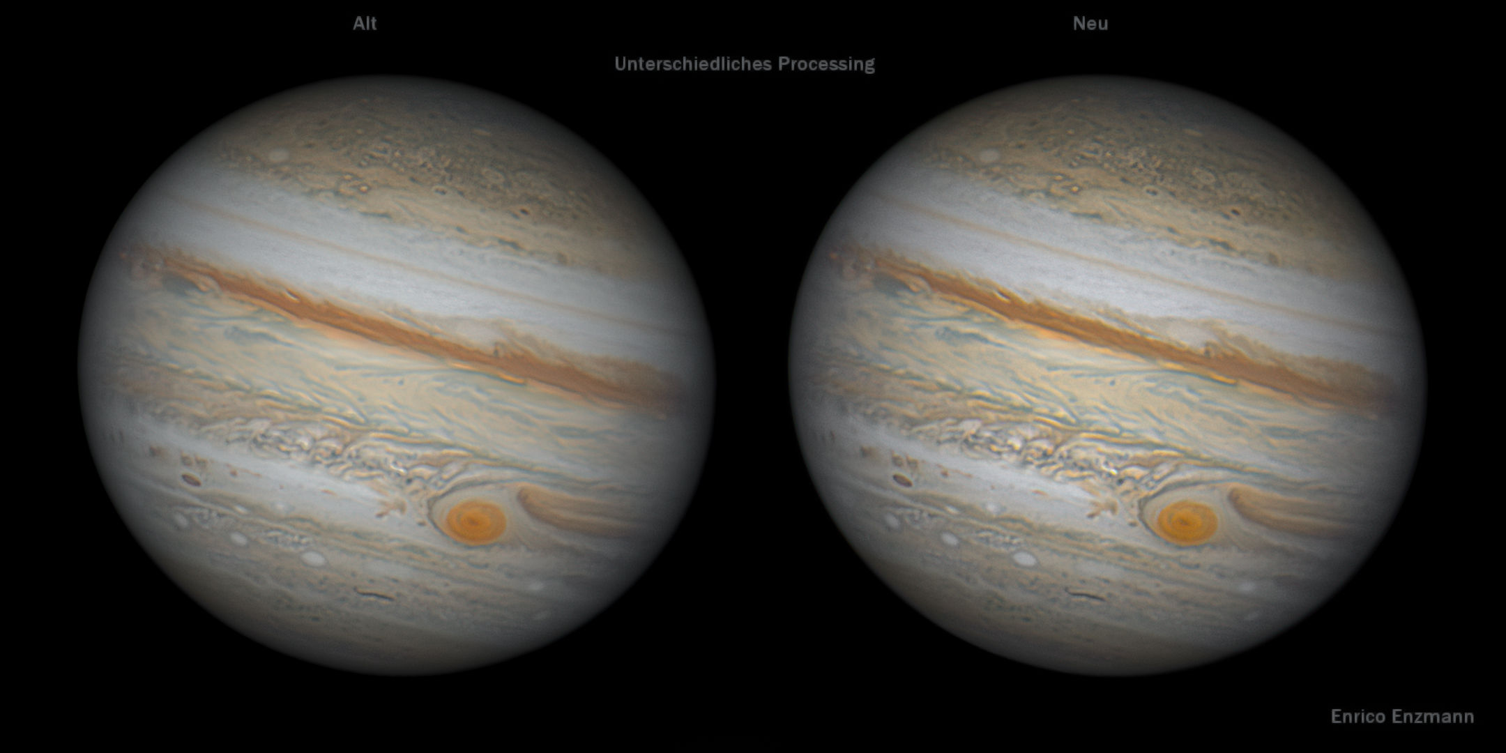 Leserbilder Astronomie: Vergleich unterschiedlicher Verarbeitung von Jupiter-Bildern