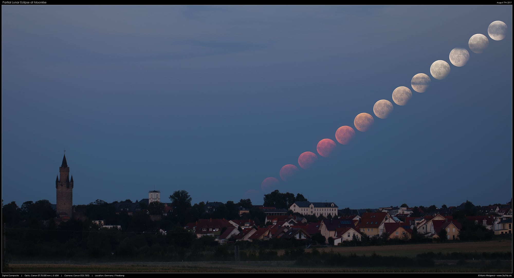 Leserbilder Astronomie: Verlaufskomposit der partiellen Mondfinsternis 2017