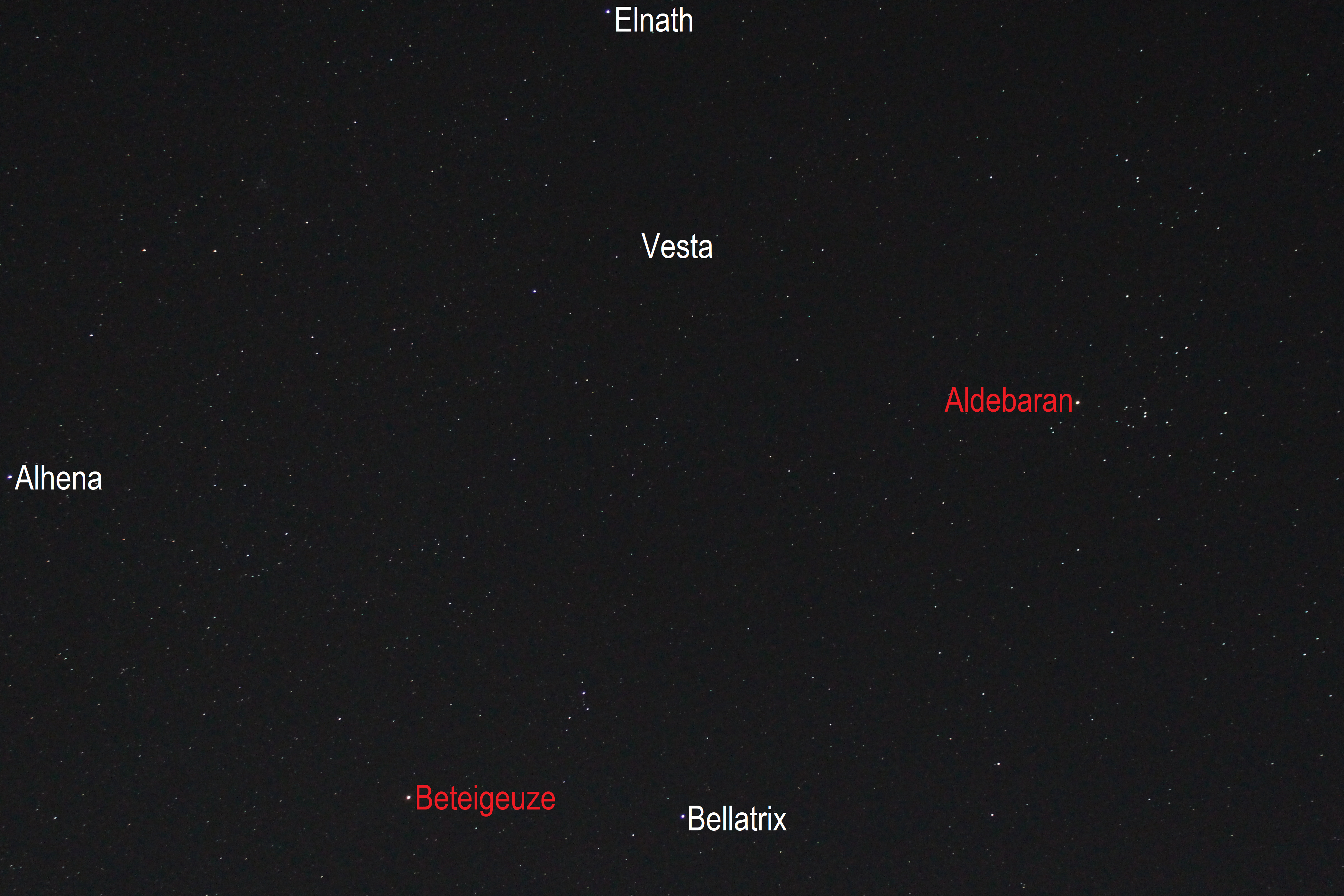 Leserbilder Astronomie: Vesta im Sternbild Stier (Objekte beschriftet)