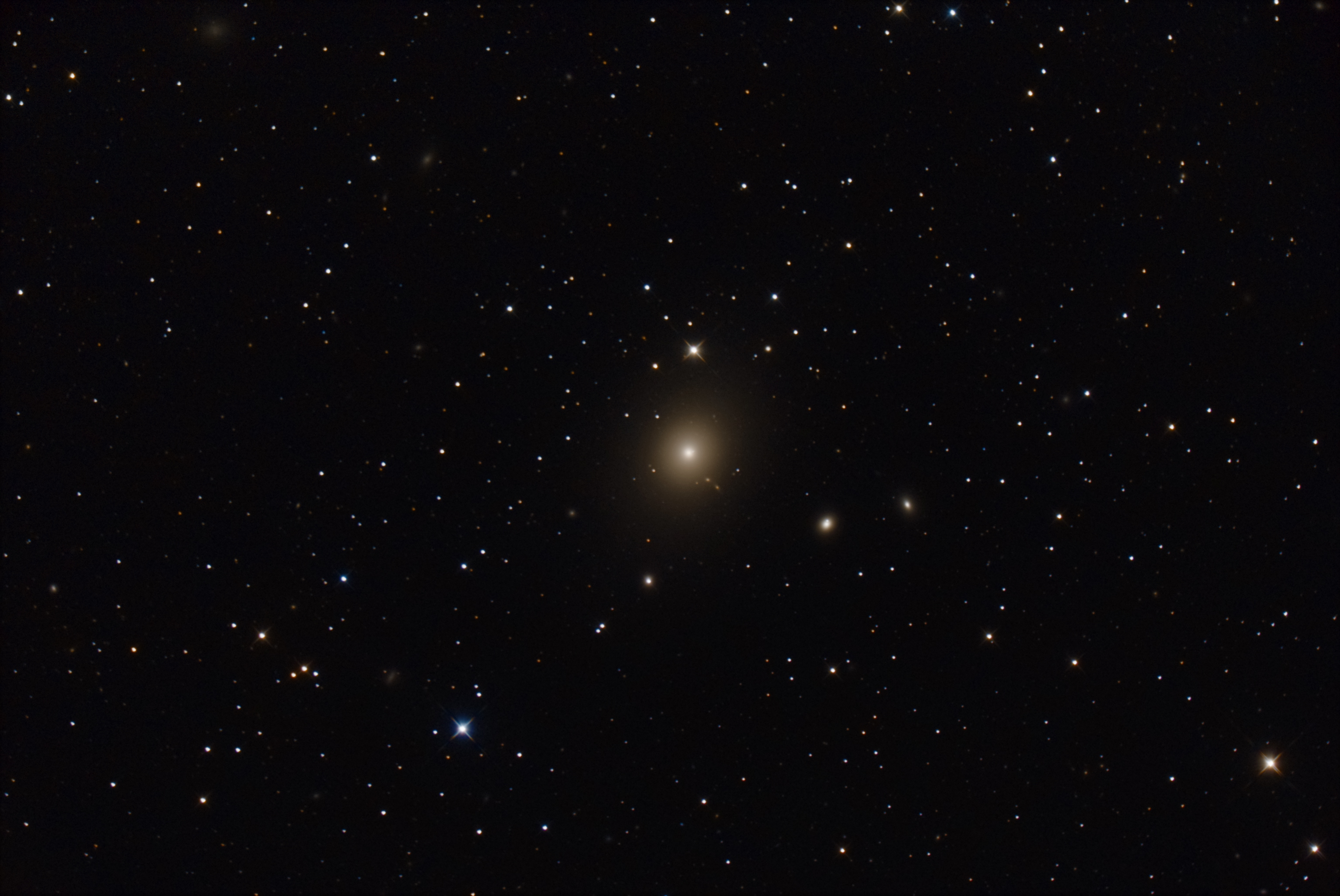 Mit etwas mehr Brennweite lässt sich der Jet aus dem Zentrum der Galaxie Messier 87 fotografisch erahnen! Die Galaxie ist etwa 55 Millionen Lichtjahre von uns entfernt.