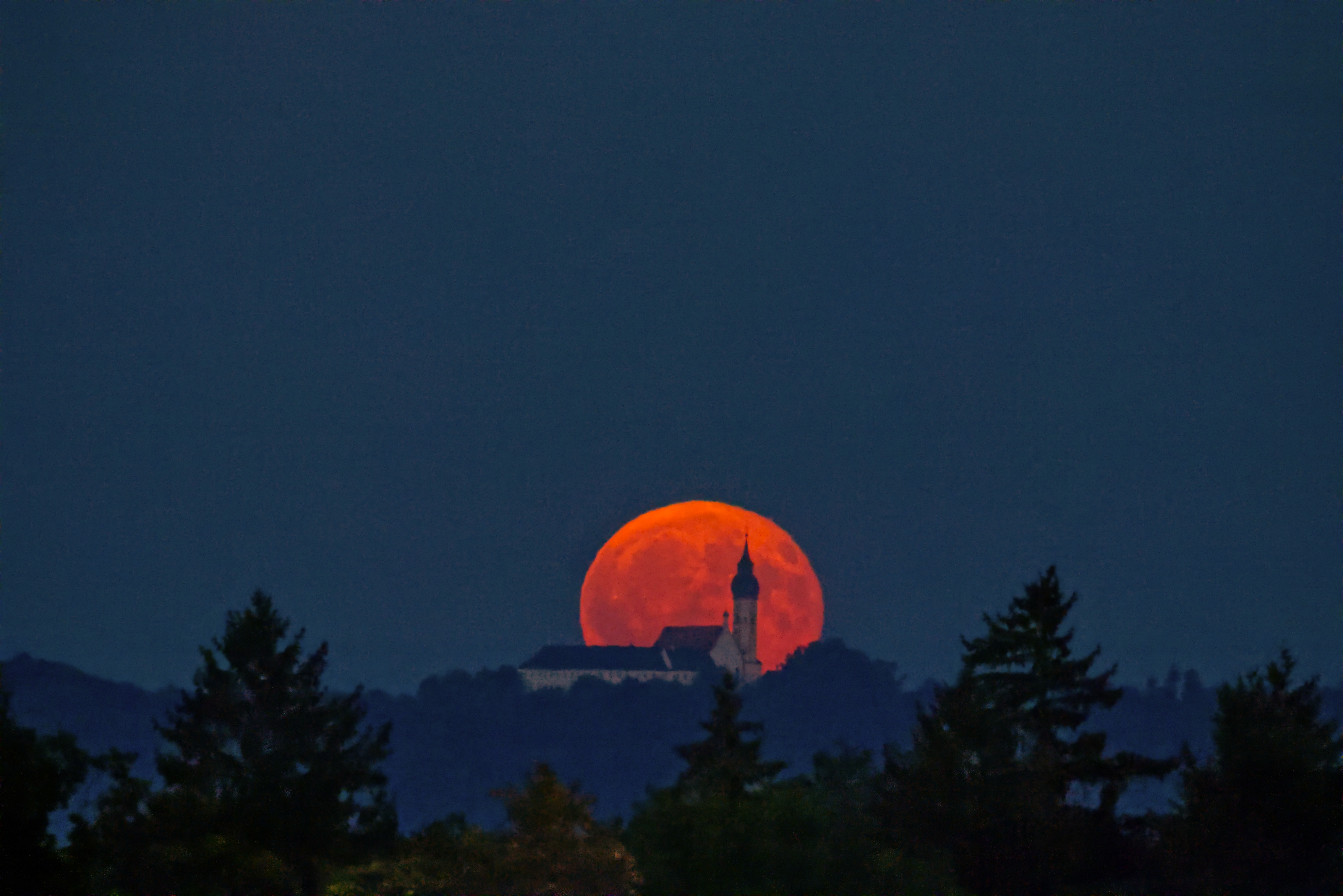 Leserbilder Astronomie: Vollmond über Kloster Andechs