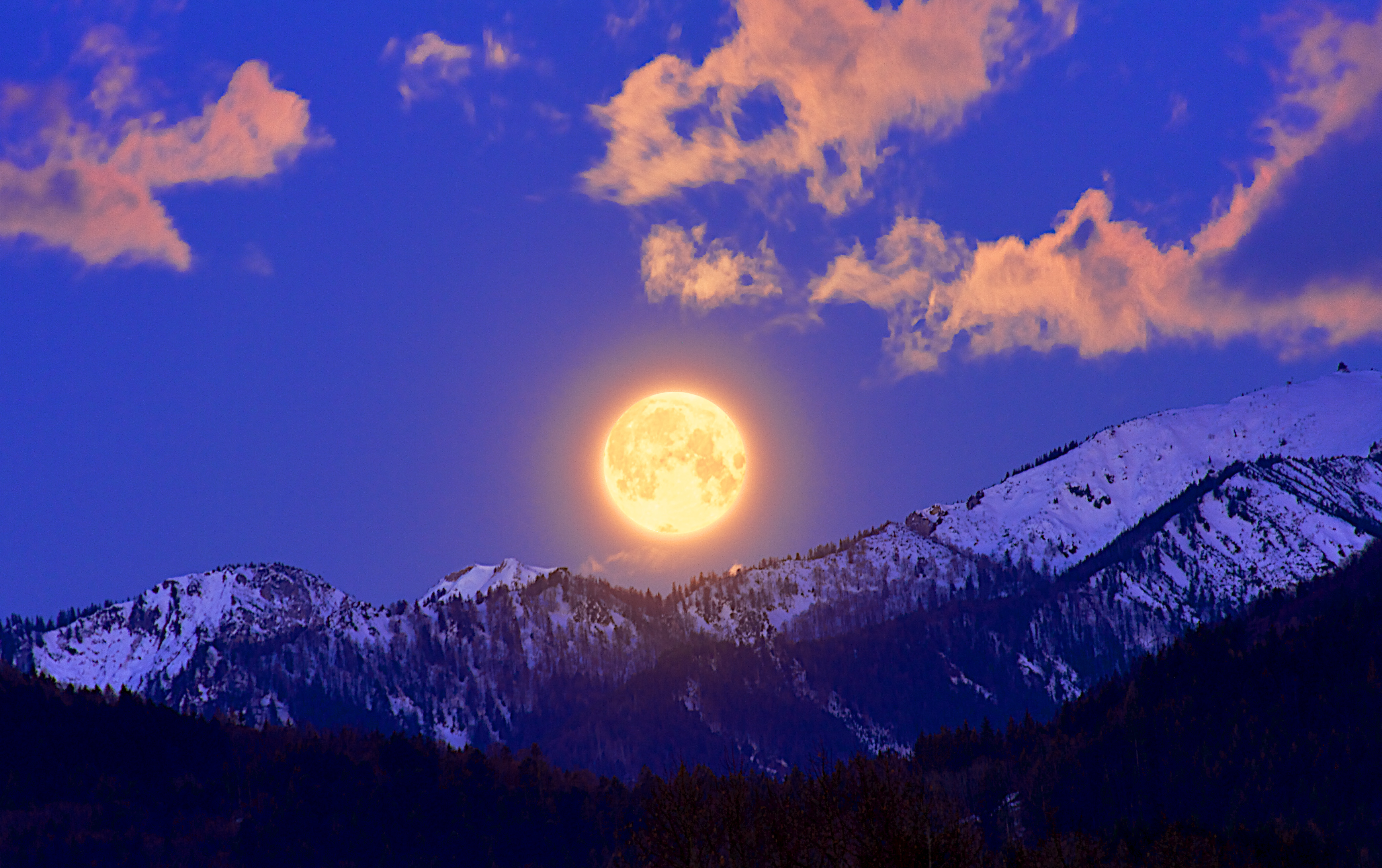 Leserbilder Astronomie: Vollmond-Untergang über dem Hochfelln