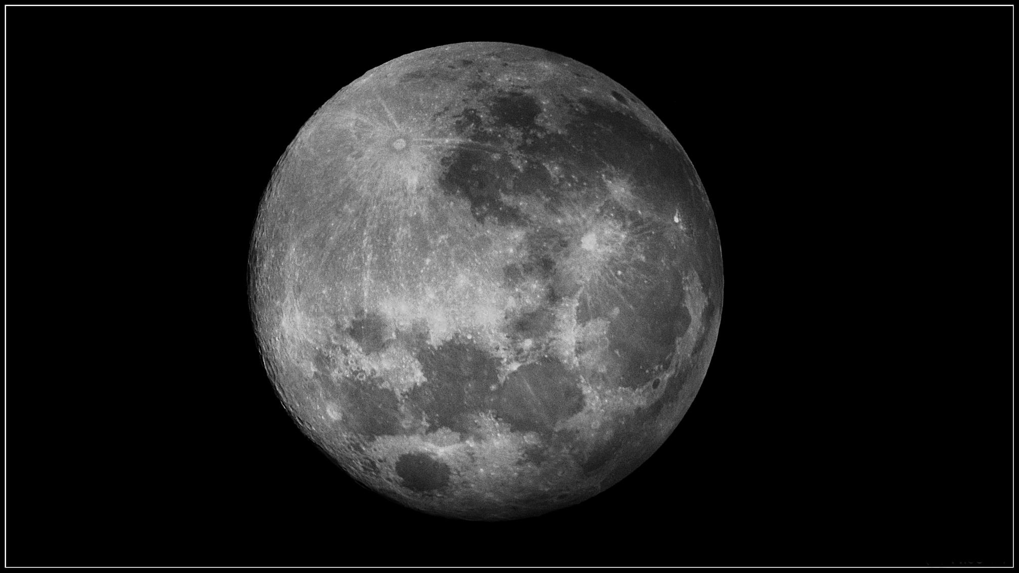 Wie in jeder klaren Nacht stellte ich mein Teleskop in den Garten, um die unendlichen Weiten zu beobachten. Da der Mond extrem hell war und es keinen Sinn gemacht hätte, Deepsky- Objekte zu beobachten, war dieses Mal der Vollmond dran; so entstand auch diese Aufnahme.