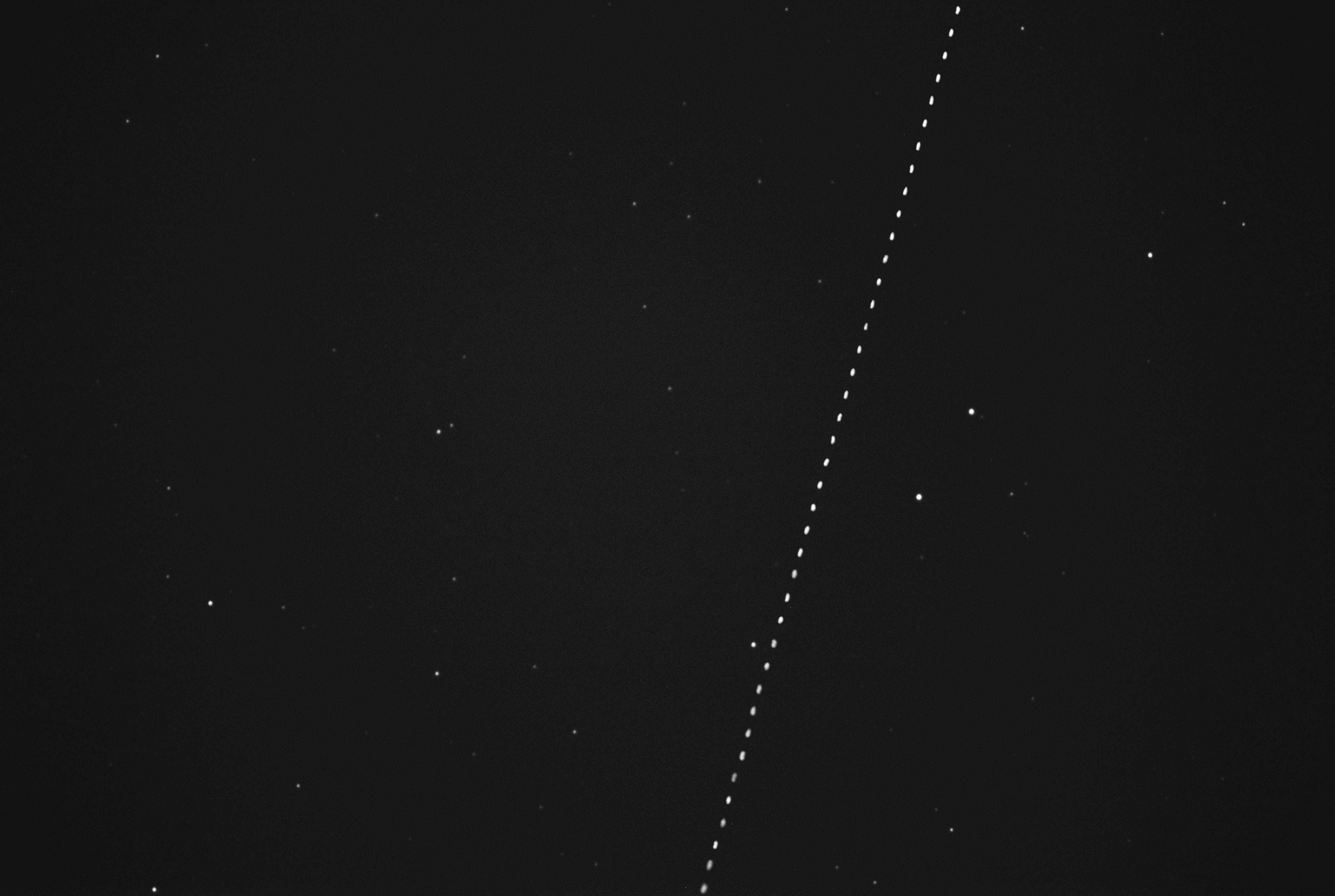 Der mehr als vier Kilometer große Asteroid (3122) Florence verringert um die Monatswende August/September 2017 die Distanz zur Erde auf etwa 1/20 des Abstands Erde-Sonne und erreicht eine scheinbare Helligkeit von 9 mag. Komposit aus 41 Fotos, die alle zwei Minuten aufgenommen wurden. Florence passiert hier das Sternbild Steinbock und fliegt Richtung Norden (oben im Bild). Bildausschnitt beträgt etwa 30' x 20'.