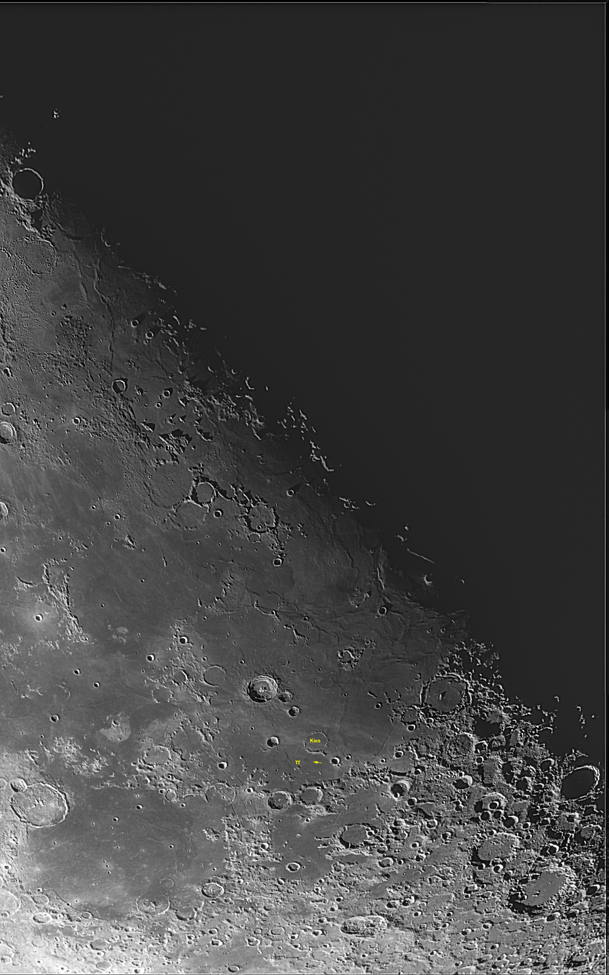 Einer der bekanntesten lunaren Dome ist Kies π. Der Krater Kies liegt zwischen Gassendi und Pitatus. Nördlich davon Bullialdus.