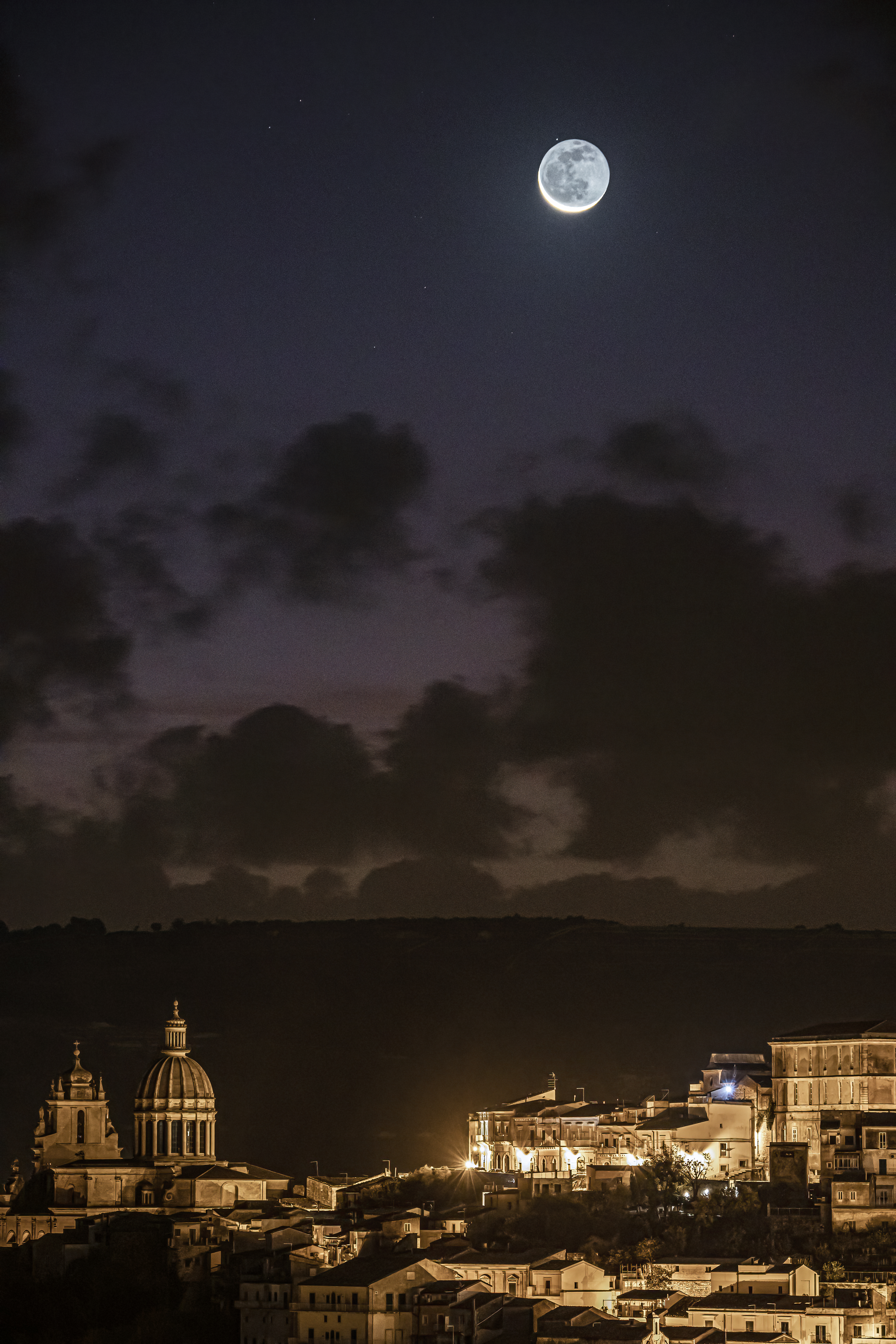 Leserbilder Astronomie: Waning moon over »Ragusa Ibla« (Sicily)