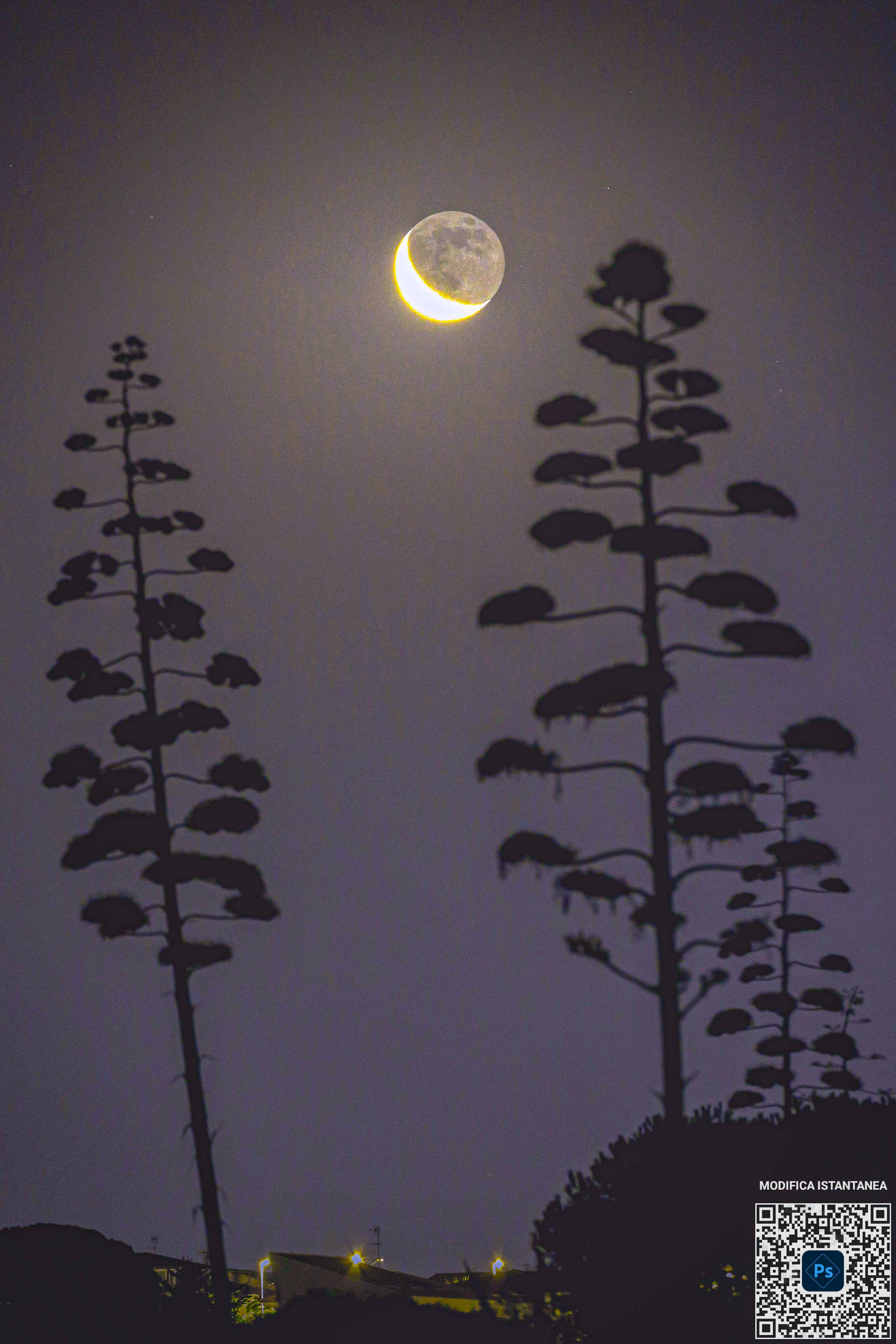 Leserbilder Astronomie: Waning moon over the sicilian agave Italy, marina di Modica