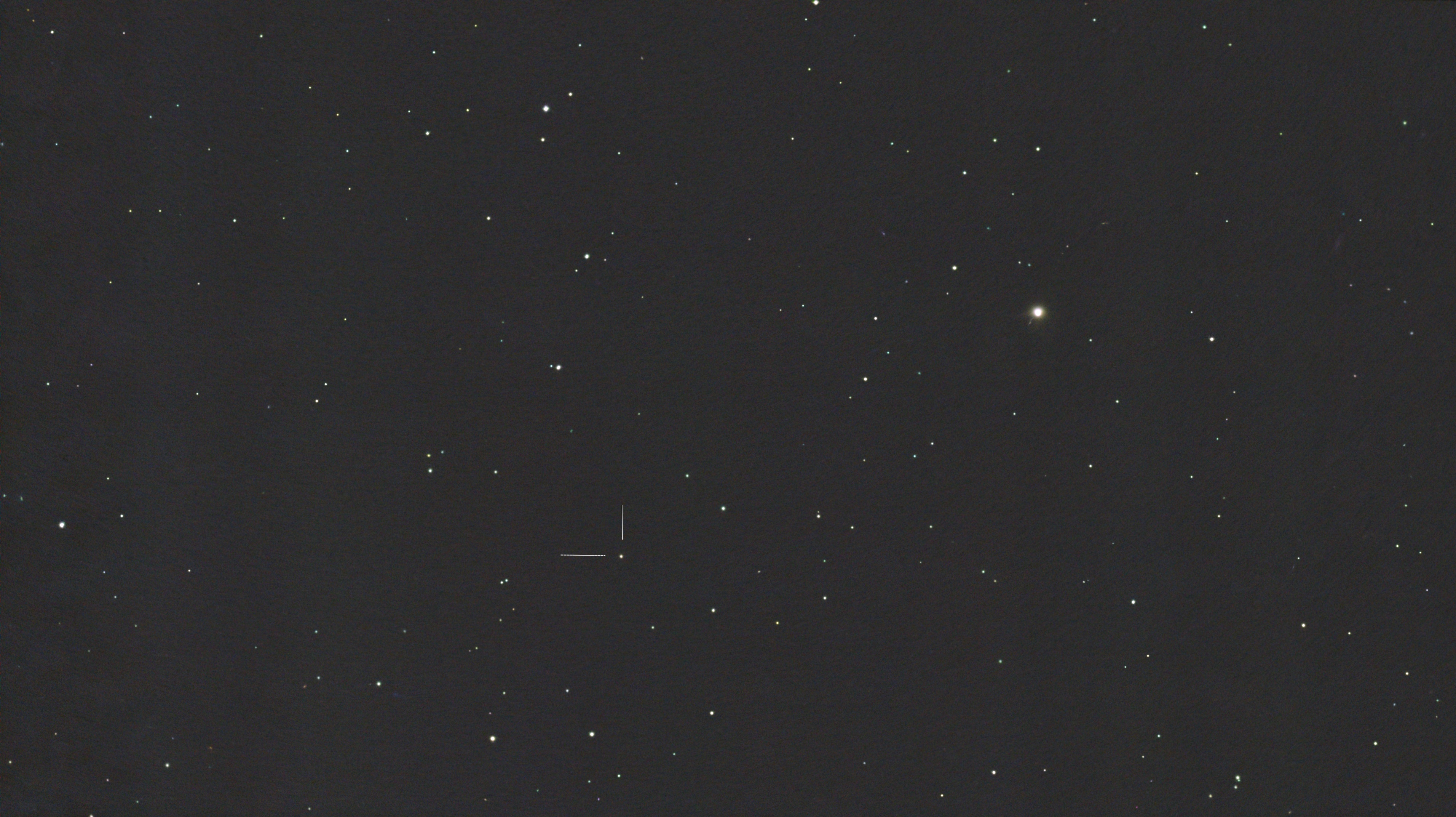 Aufgenommen am 7. Oktober 2025 in Basel, Schweiz mit einem Dwarf II. IR Filter, Gain 60, 2 Sek., 30 Stacks. Eps CrB ist der helle Stern rechts in der oberen Ecke. Die Bildgröße ist etwa 2,95 x 1,66 Grad.