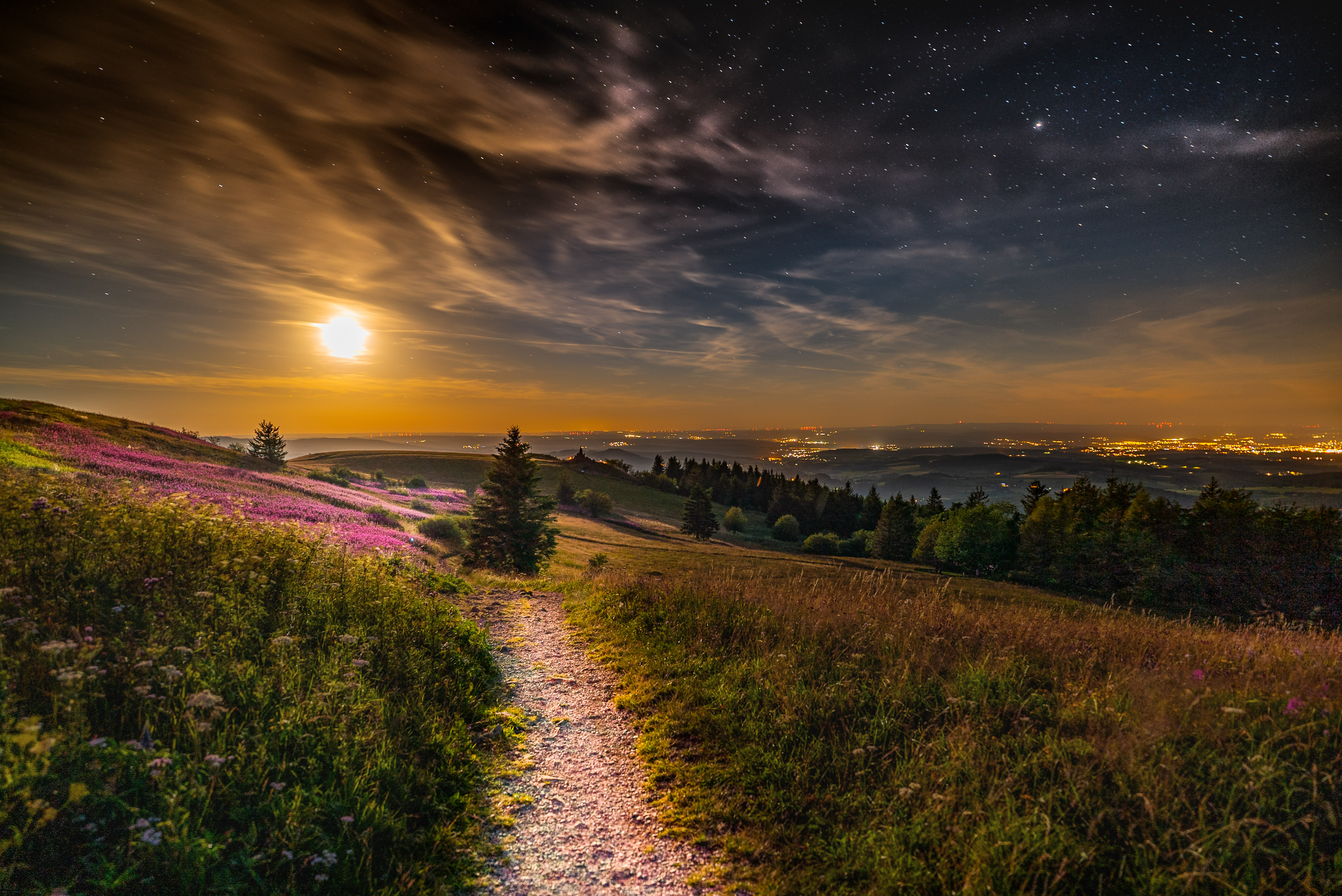 Wasserkuppe im Mondlicht, Komposit, Sony A7s, 20 mm, f1,8, 30 sec., ISO 400
