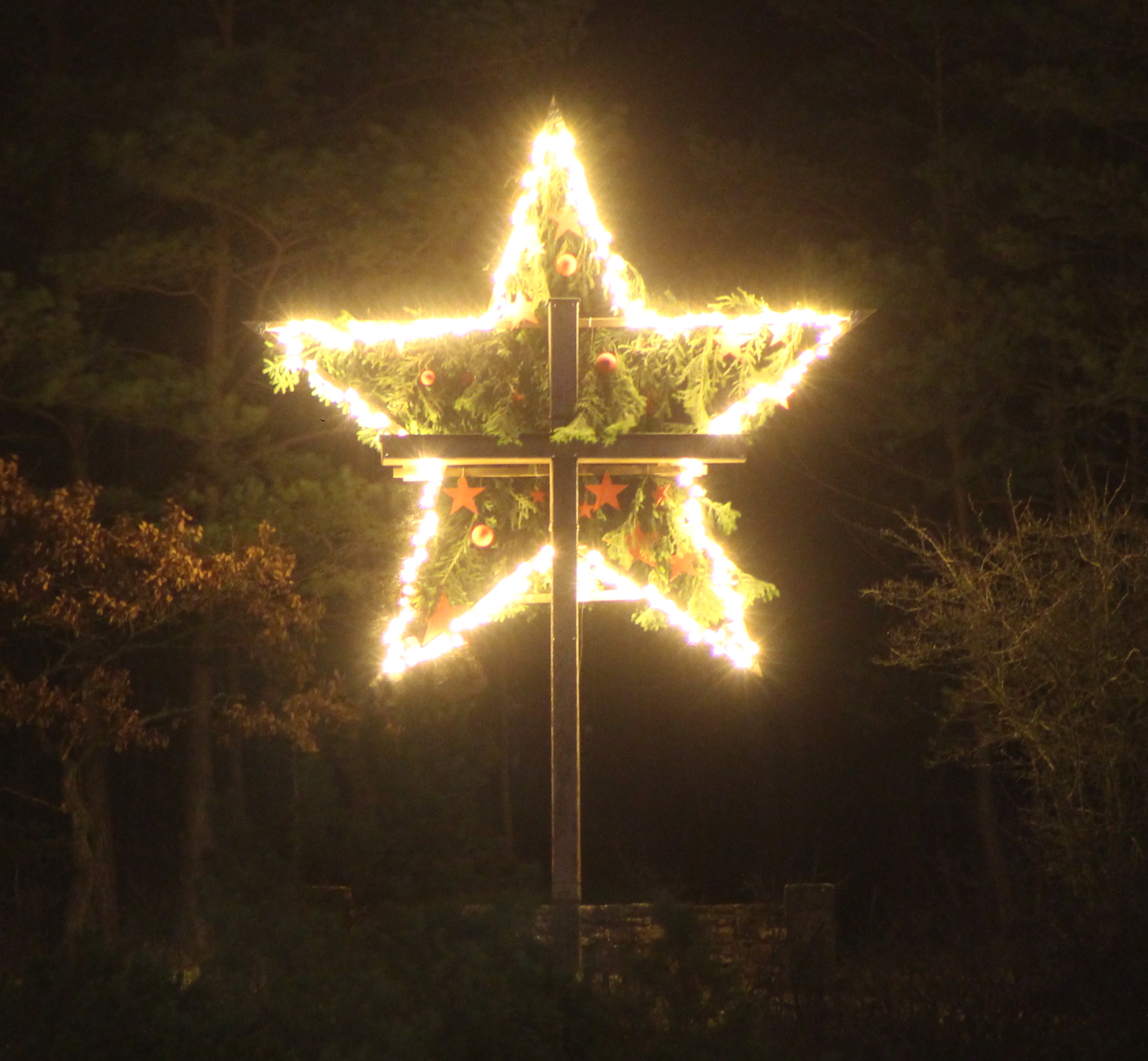 Sternförmige Lichtinstallation am Haslichkreuz in Wollbach (Unterfranken). Zwar kein astronomisches Objekt, aber trotzdem schön.
