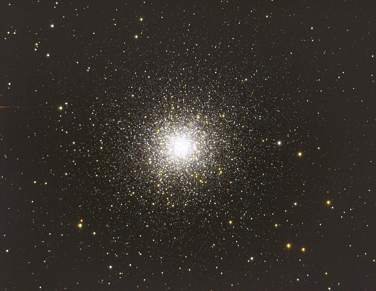 Diese oft gestellte Frage bleibt eher unentschieden! Fakten sind: M 13 ist mit 5,7 mag schwächer als M 22 (5,1 mag). M22 ist der dritthellste Kugelhaufen nach Omega Centauri und 47 Tucanae am Südhimmel, damit also der hellste Kugelhaufen am Nordhimmel! M 13 liegt isoliert außerhalb des Milchstraßenbandes, M 22 mitten in einem reichen Sternfeld! Der scheinbare Durchmesser von M 13 beträgt 21 Bogenminuten, der von M22 jedoch 33 Bogenminuten, dafür ist M 13 25000 Lichtjahre (hellste Sterne 11,9 mag, wahrer Durchmesser 160 Lichtjahre) entfernt, M 22 (hellste Sterne 10,7 mag) mit nur 10400 Lichtjahren der nächste aller Kugelsternhaufen! Der Helligeitsabfall (Sterndichte) ist bei M 13 (KlasseV) stark ausgeprägt,während er bei M 22 (Klasse VII) flacher verläuft. In diesem Sommer habe ich beide Kugelsternhaufen innerhalb kurzer Zeit aufgenommen, wobei ich M13 über zwei Stunden belichtete um die Ausläufersterne zu erreichen. Beide Aufnahmen wurden kontrastverstärkt bearbeitet.