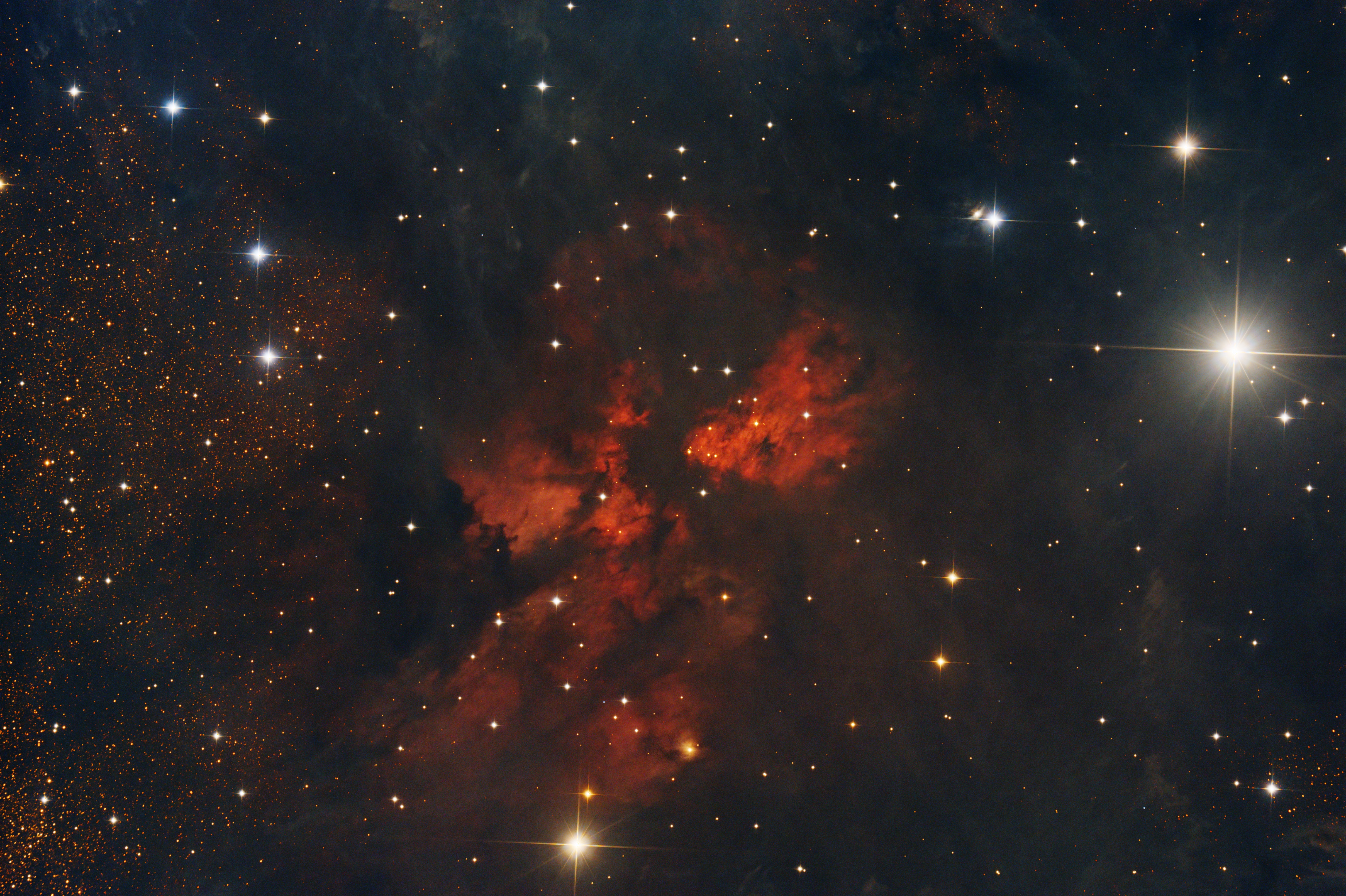 Dieses Objekt im Sternbild Serpens ist sowohl bekannt als Westerhout 40 aber auch unter der Bezeichnung Sh2-64. Es handelt sich um eine Sternentstehungsregion, die erst im Infraroten zeigt, was wirklich in ihr steckt. Aber auch im sichtbaren Licht zeigen sich faszinierende Dunkel-, Reflexions- und Emissionsnebel. Aufgenommen wurde das Bild mit dem 24"-Ganymed-Teleskop auf Kreta.