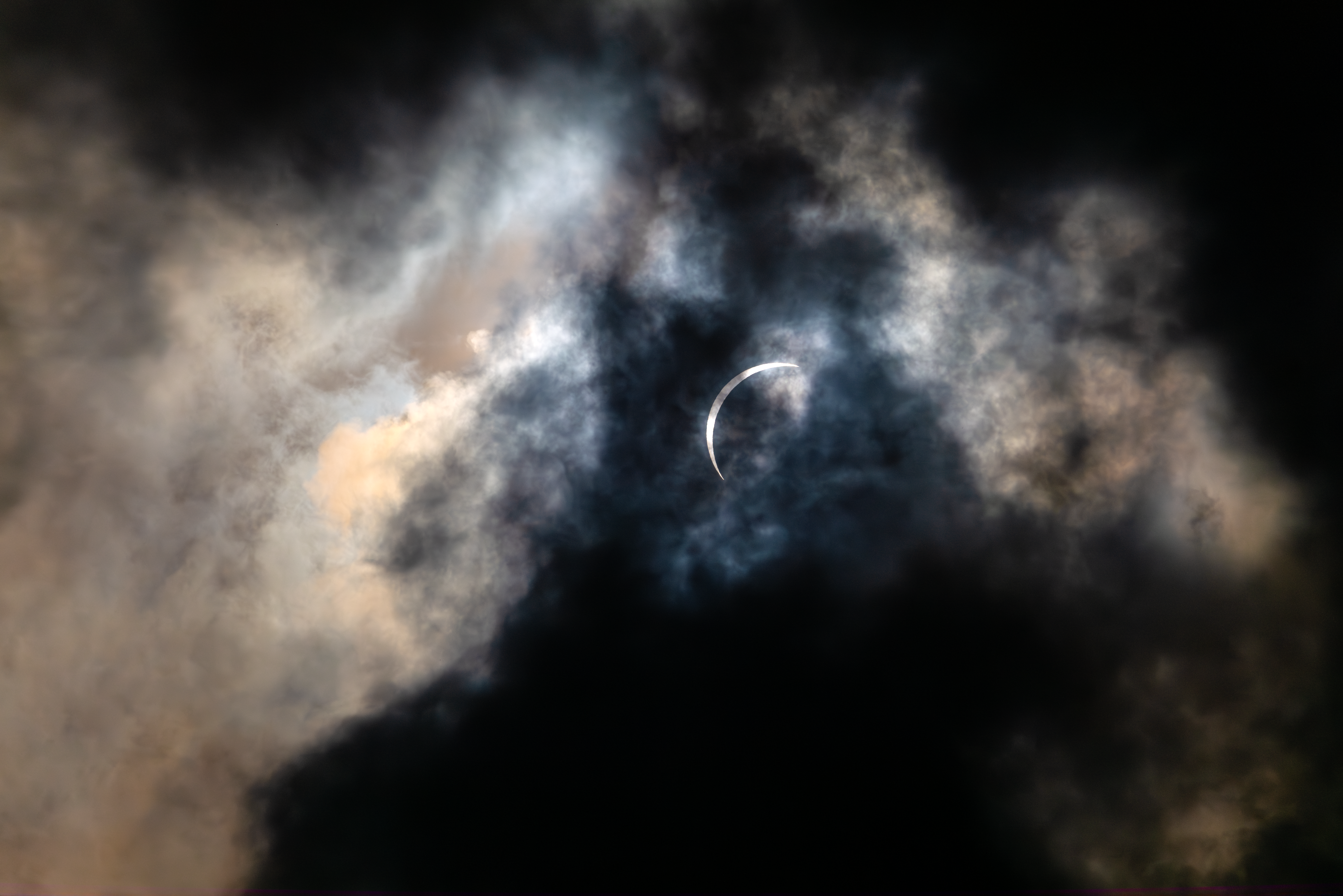 Wir sind nach Kerrville, TX, gereist, um die totale Sonnenfinsternis zu beobachten. Die Wetteraussichten waren entgegen den klimatologischen Werten nicht sehr optimistisch. Die Wolken nahmen zum Höhepunkt immer mehr zu, was aber zu tollen dramatischen Bildern führte.