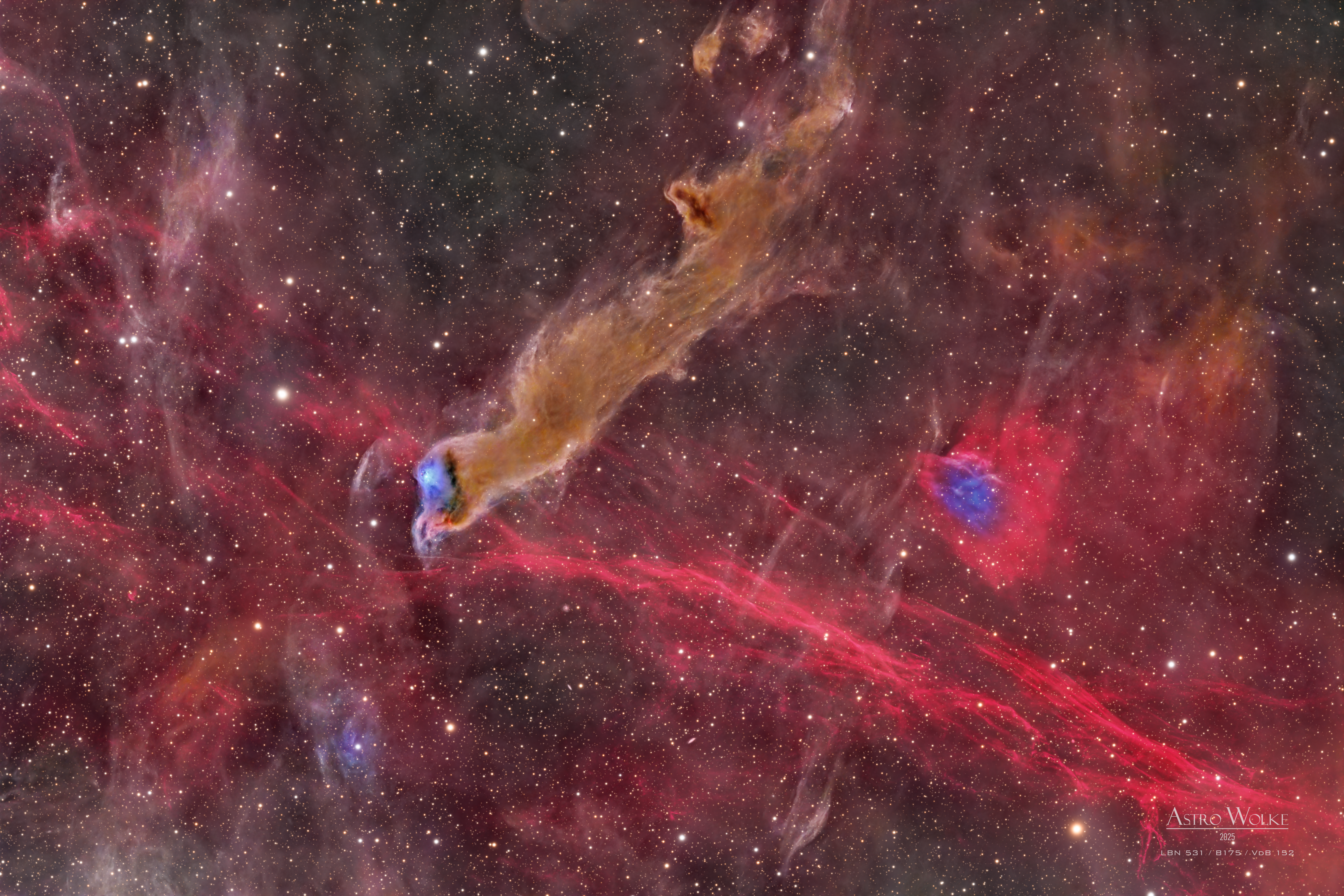 Das Objekt wurde aycht Nächte lang mit zwei Teleskopen belichtet. Insgesamt kamen so 50 Stunden Belichtungszeit für das Bild zusammen. Getrennt aufgenommen wurden Luminanz, O-III und H-alpha mit dem RASA 11' V2 und RGB mit dem TS Optics 76 EDPH. Die Aufnahme erstreckte sich über acht Nächte im März und April 2025.
