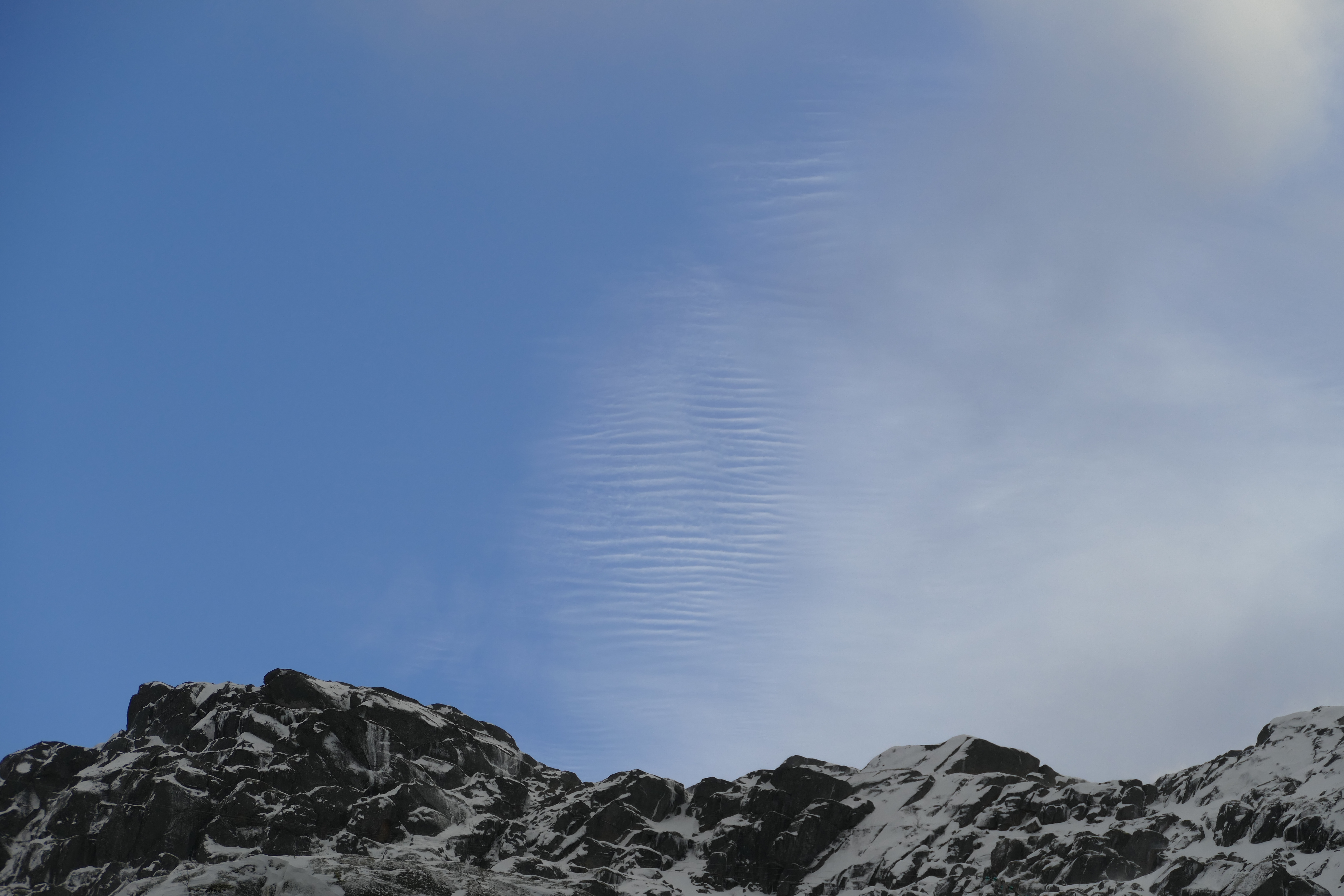 Während einer Fahrt im Trollfjord in Nordnorwegen bemerkte ich diese interessanten Wolken vom Schiff aus mit Blick auf die umgebenden Berge.