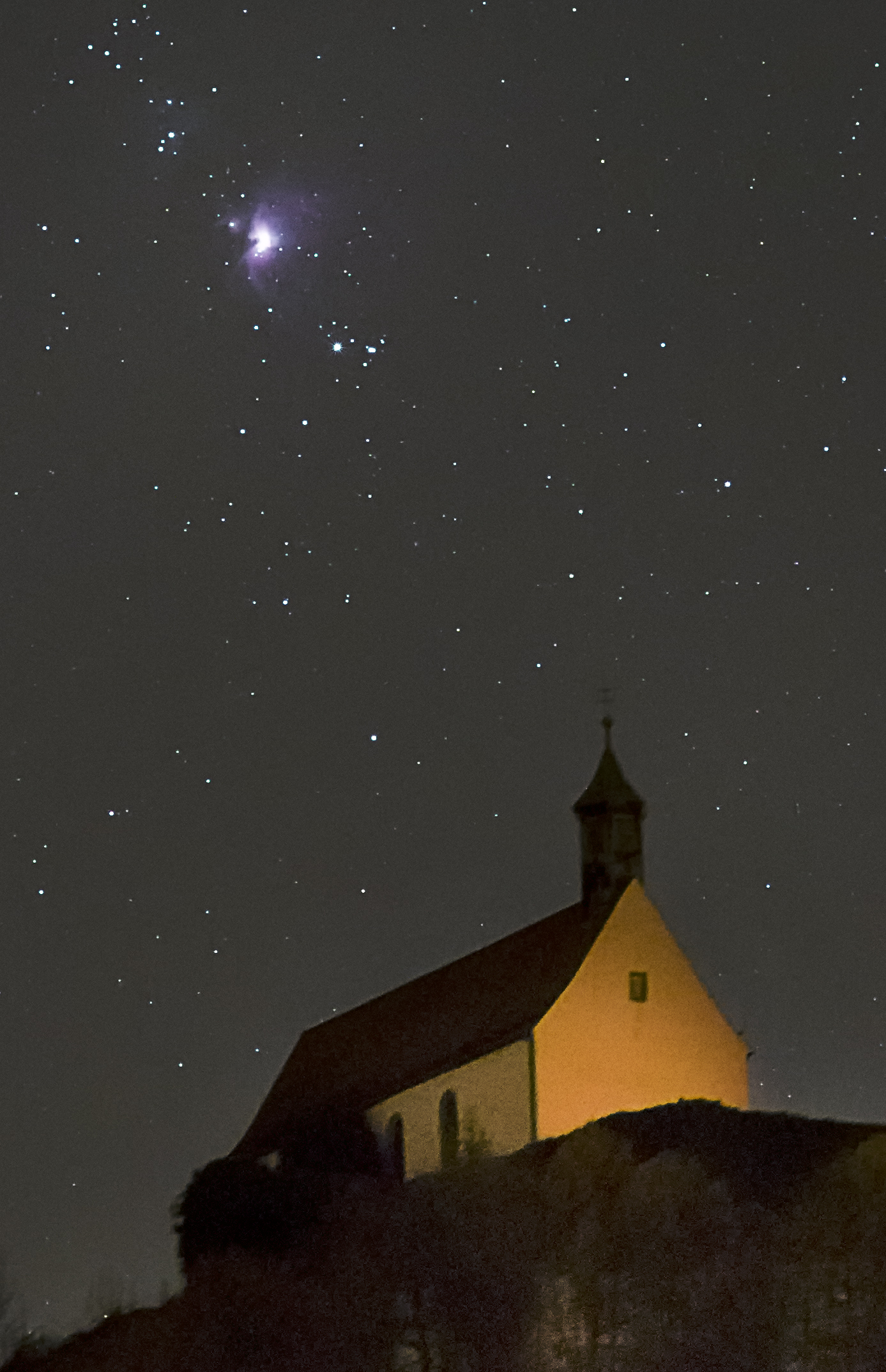 Leserbilder Astronomie: Wurmlinger Kapelle mit M42