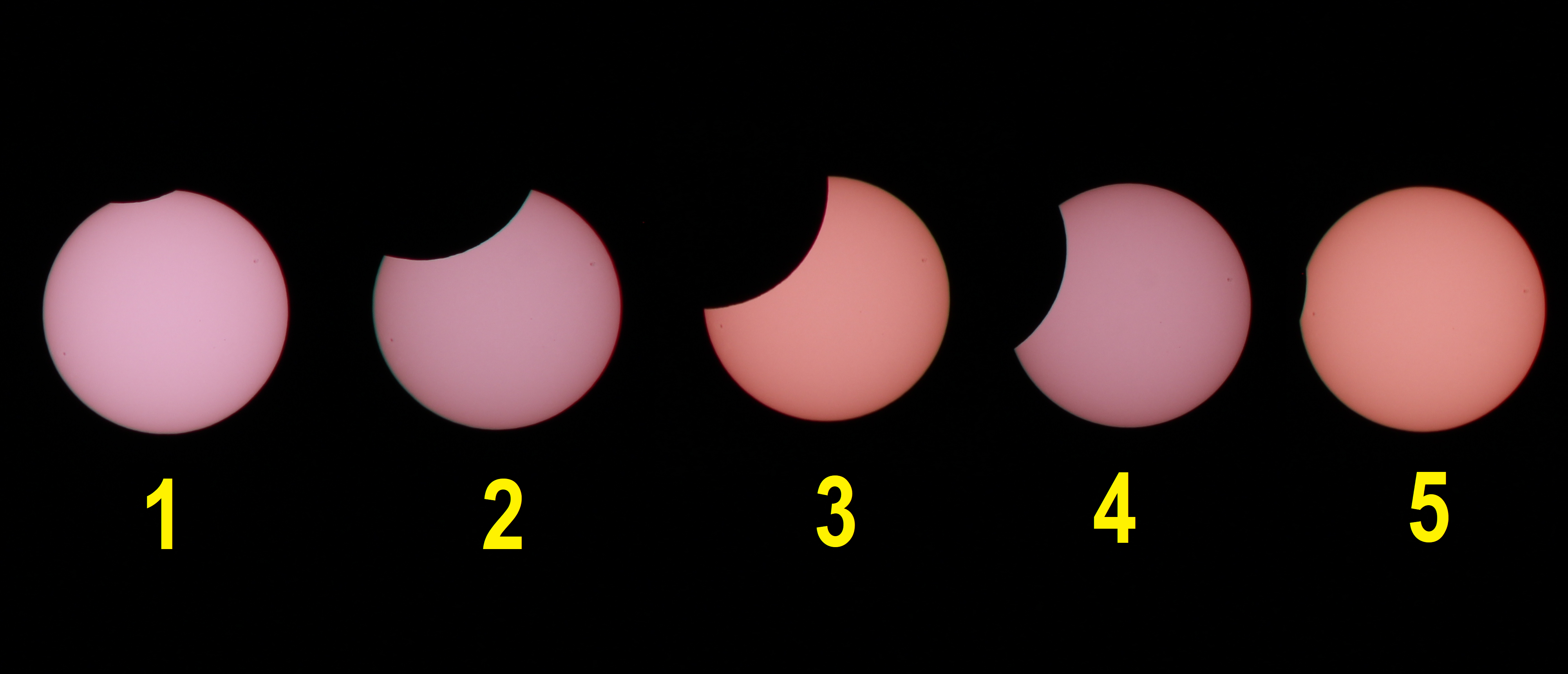 Das 1. Bild entstand zu Beginn der Finsternis um 10:18:43 Uhr MEZ unter Verwendung einer Blende von 11.