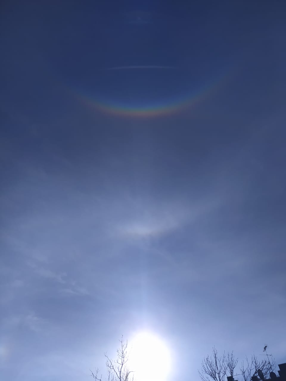 Am 20. Januar 2021, Mittags über Ingolstadt. Heute gab es Einiges zu sehen: Nebensonnen, Haloring, so etwas wie ein horizontaler riesiger Haloring und eben dieser wunderschöne Zirkumzenitalbogen.